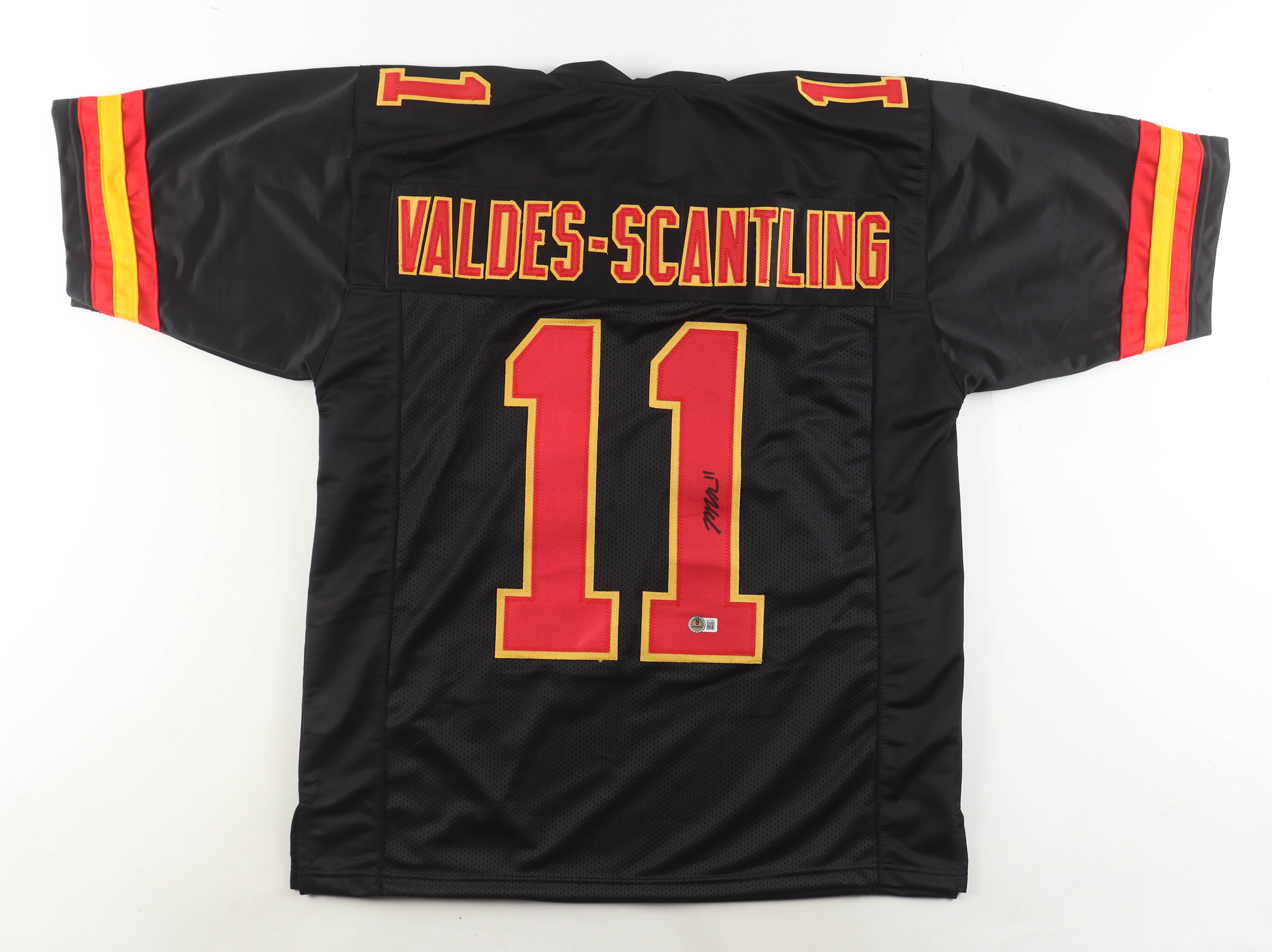 Custom jersey with everything sewn on, size XL. Hand-signed by Marquez Valdes-Scantling.