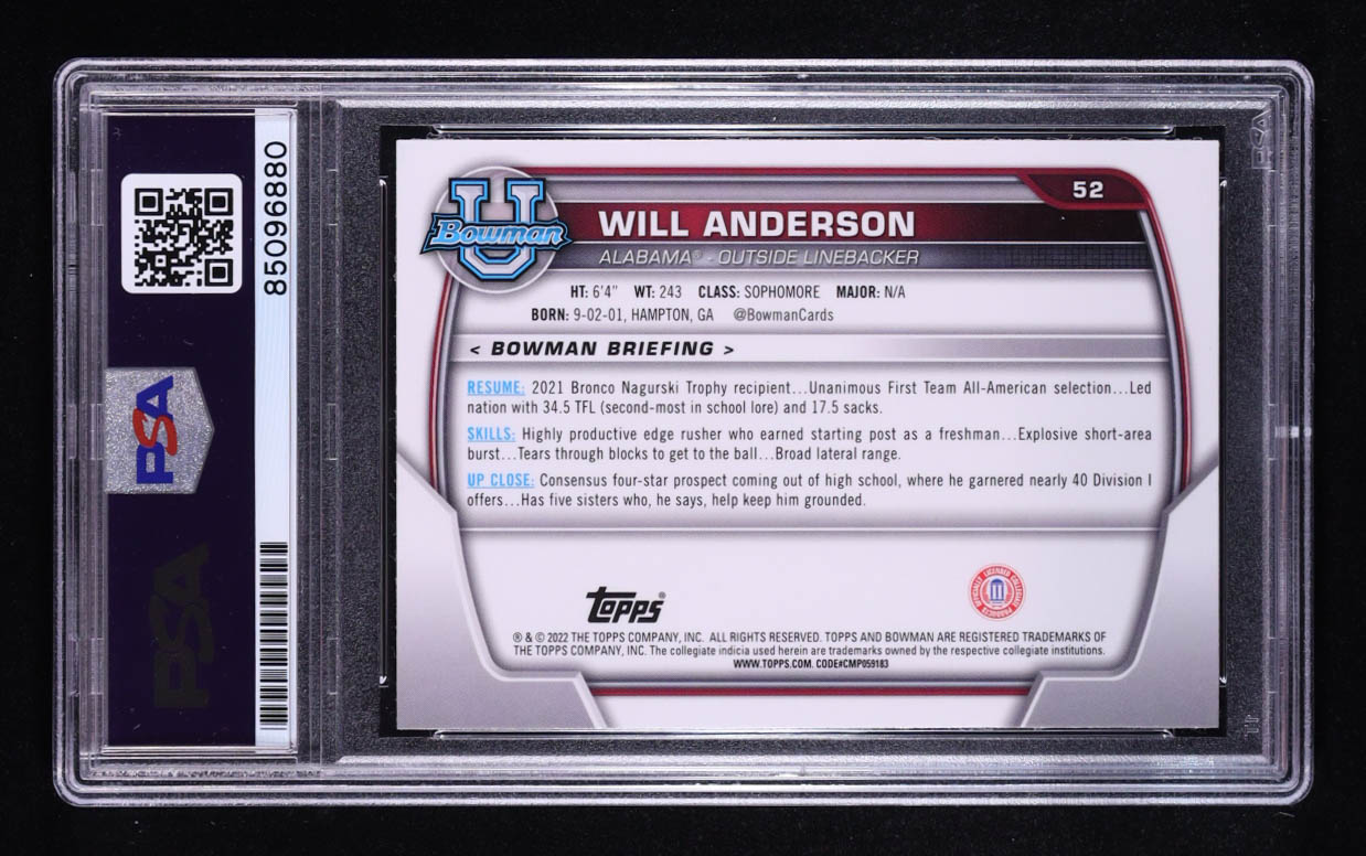 Will Anderson Jr. Signed 2022 Bowman Chrome University #52 RC (PSA)