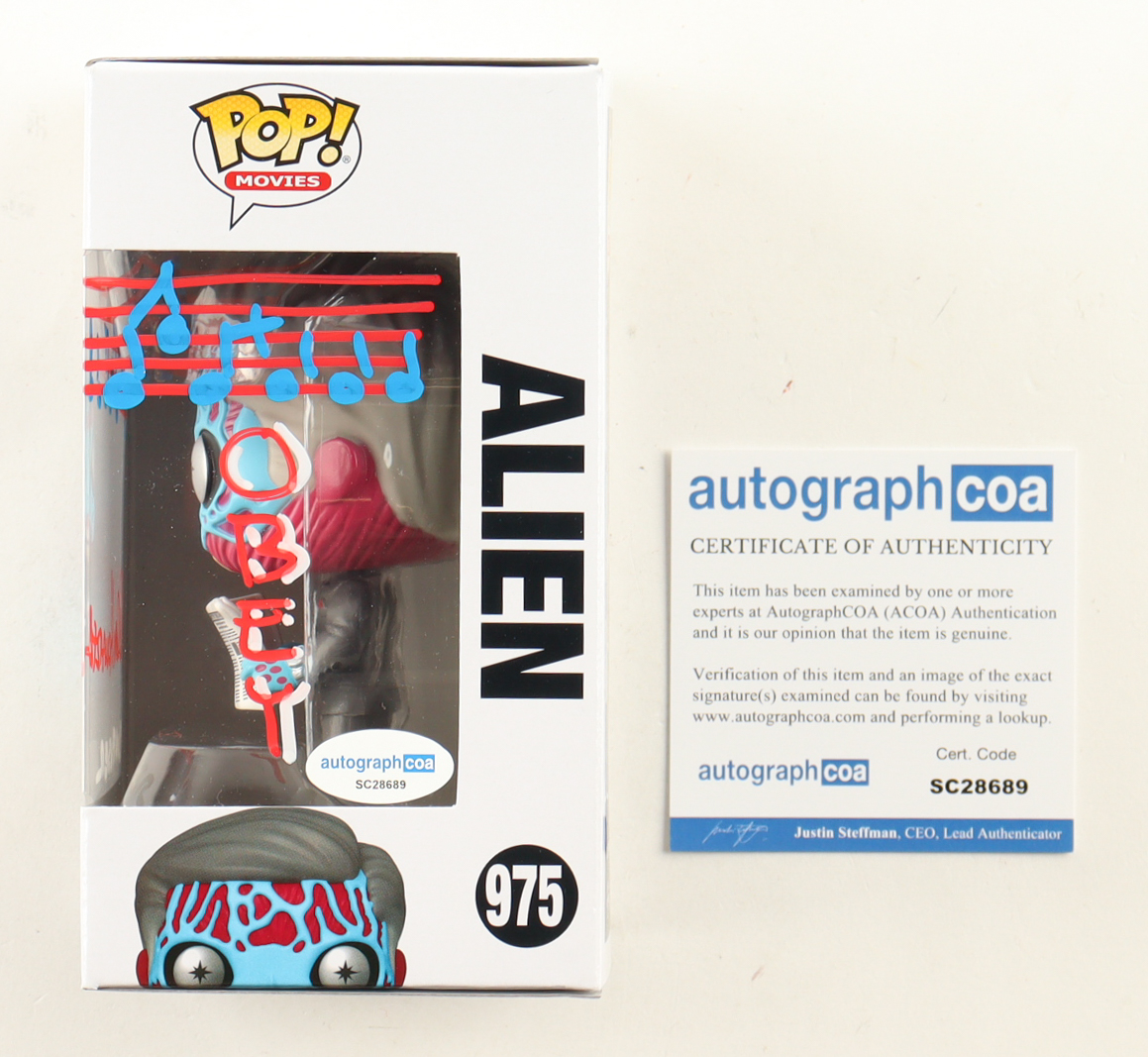 Alan Howarth Signed "They Live" #975 Alien Funko Pop! Vinyl Figure Inscribed "Composer" & "Obey" with Hand-Drawn Sketch (AutographCOA)