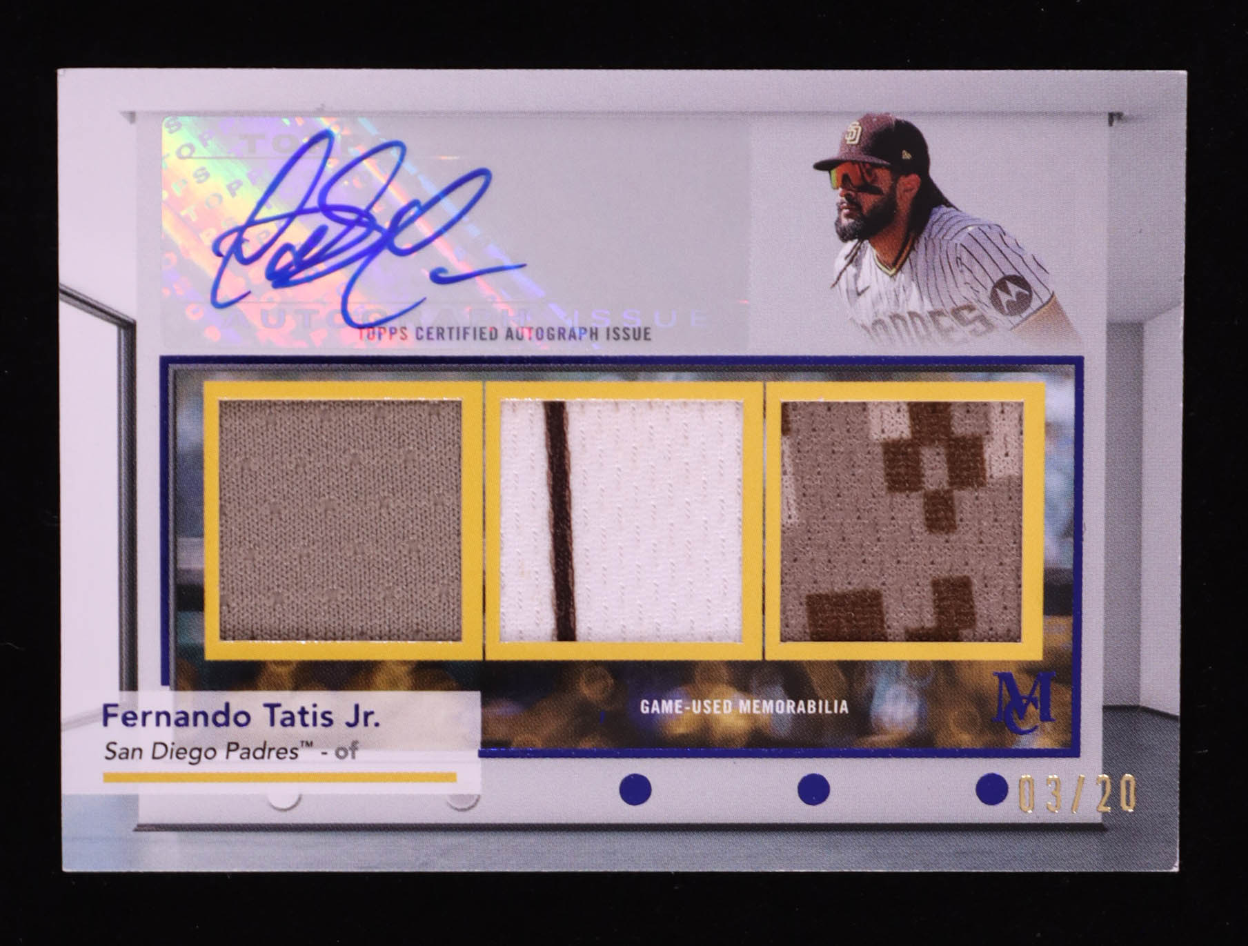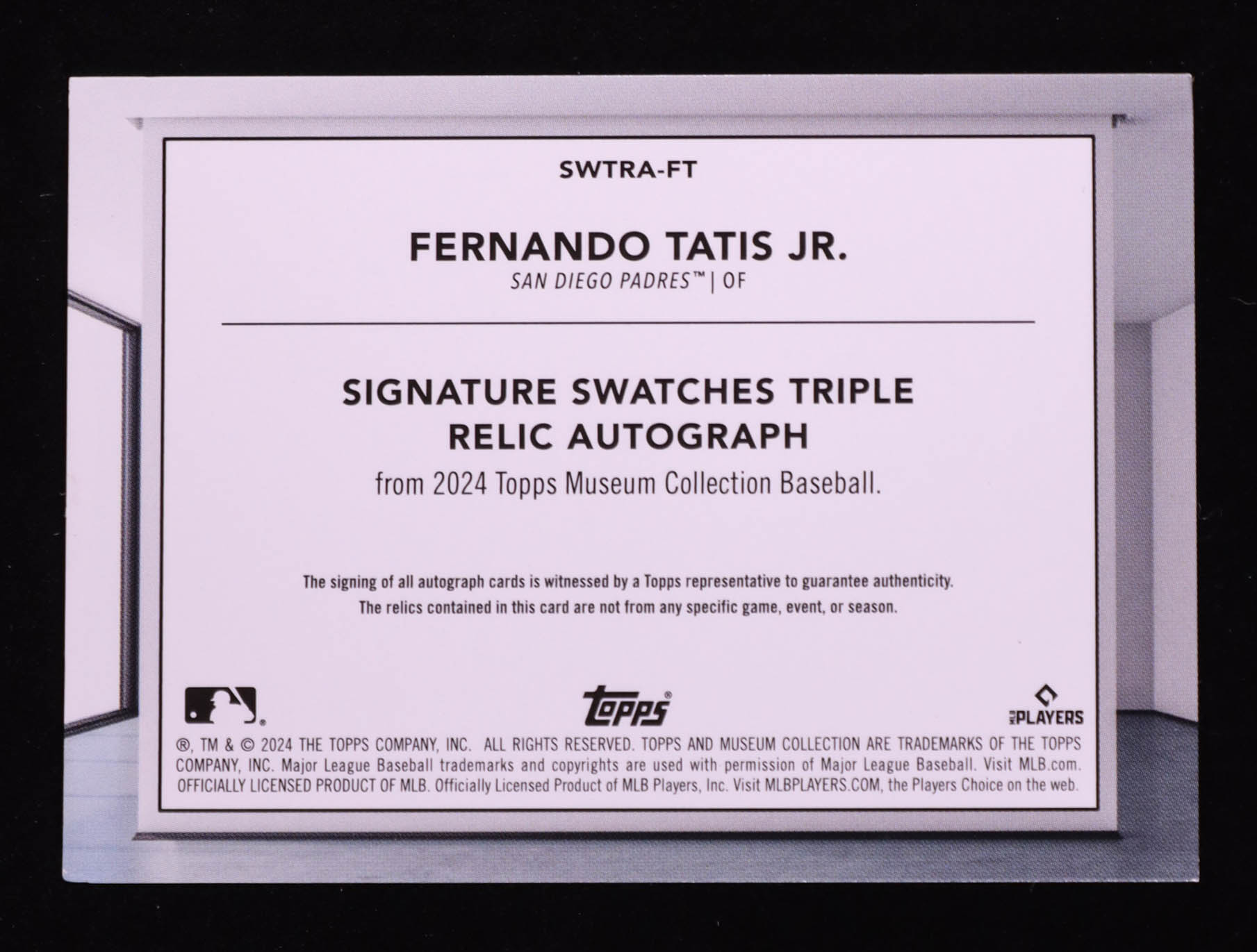 Fernando Tatis Jr. 2024 Topps Museum Collection Signature Swatches Triple Relic Autographs Sapphire #SWTRAFT #03/20