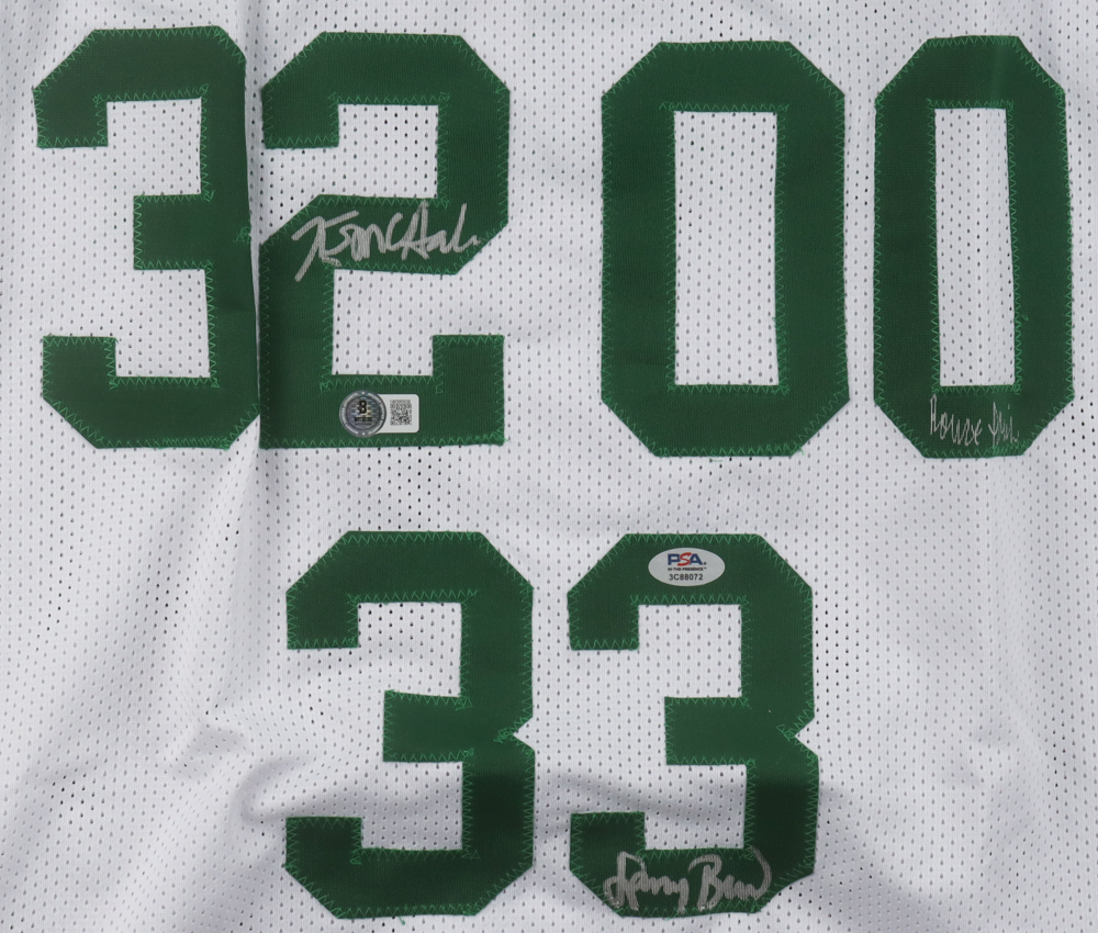 Custom jersey with everything sewn on, size XL. Hand-signed by Kevin McHale (HOF), Robert Parish (HOF), and Larry Bird (HOF).