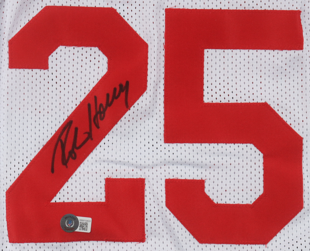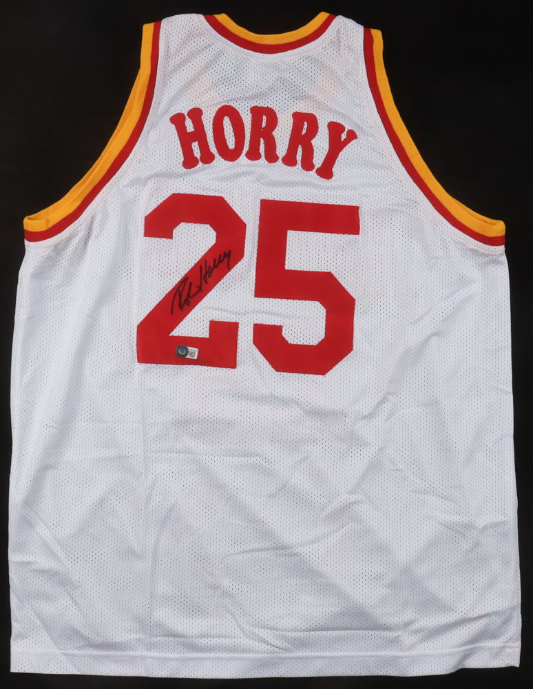 Custom jersey with everything sewn on, size XL. Hand-signed by Robert Horry.