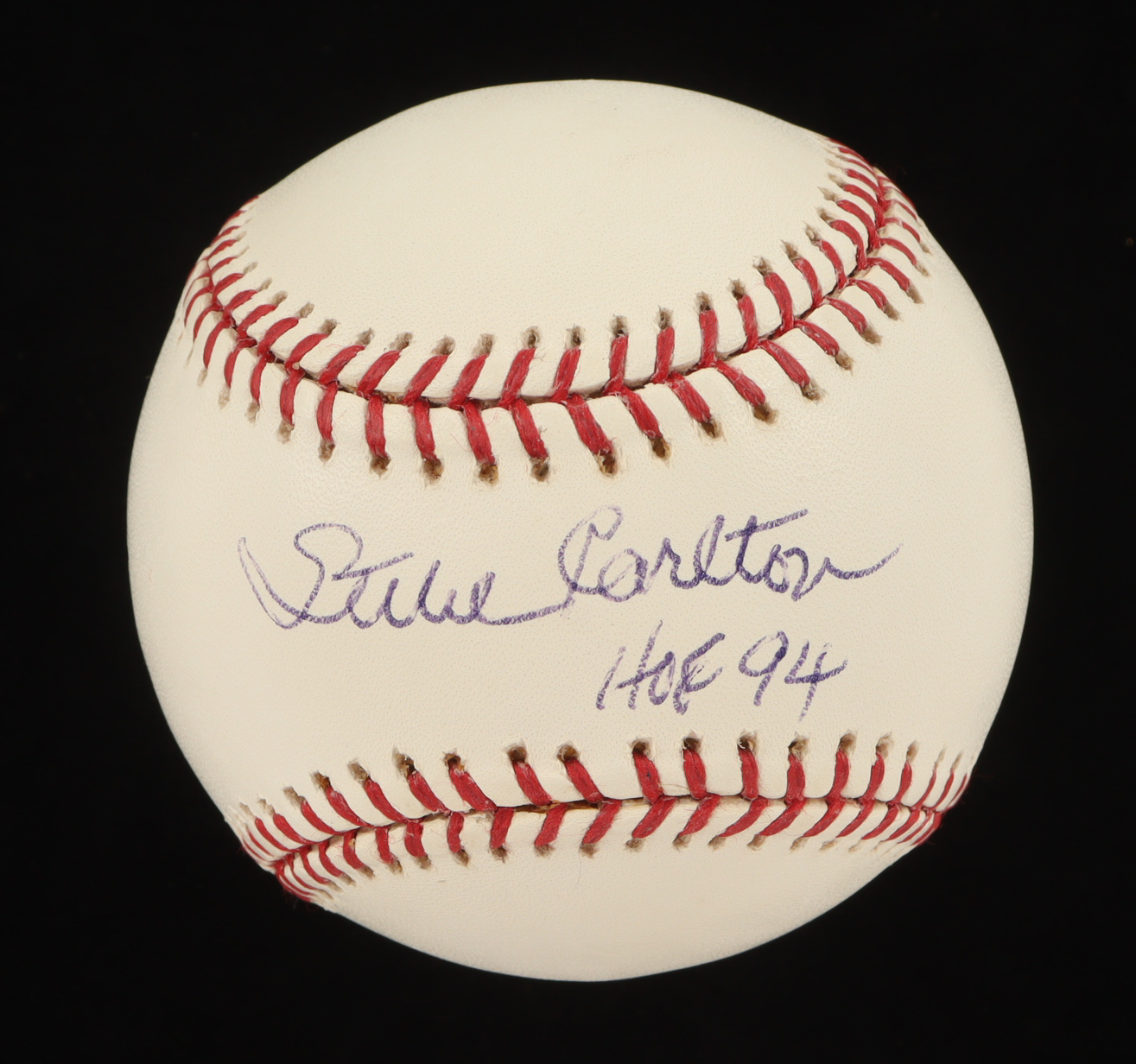 Rawlings Official 1980 World Series Baseball. Hand-signed and inscribed by Steve Carlton (Philadelphia Phillies, HOF).