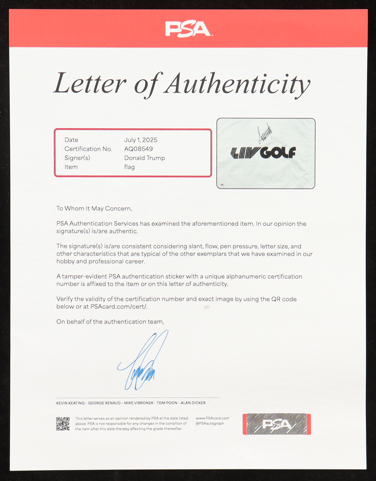 Donald Trump Signed LIV Golf Pin Flag (PSA)