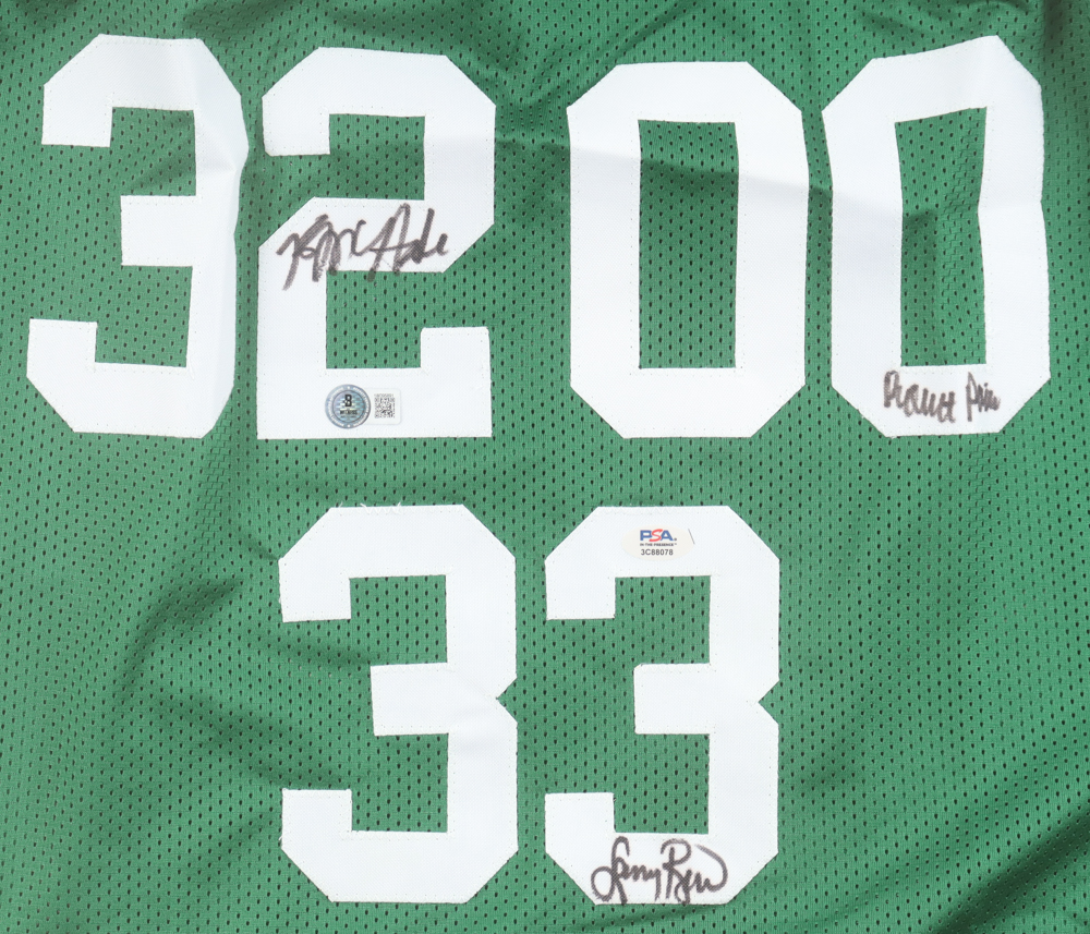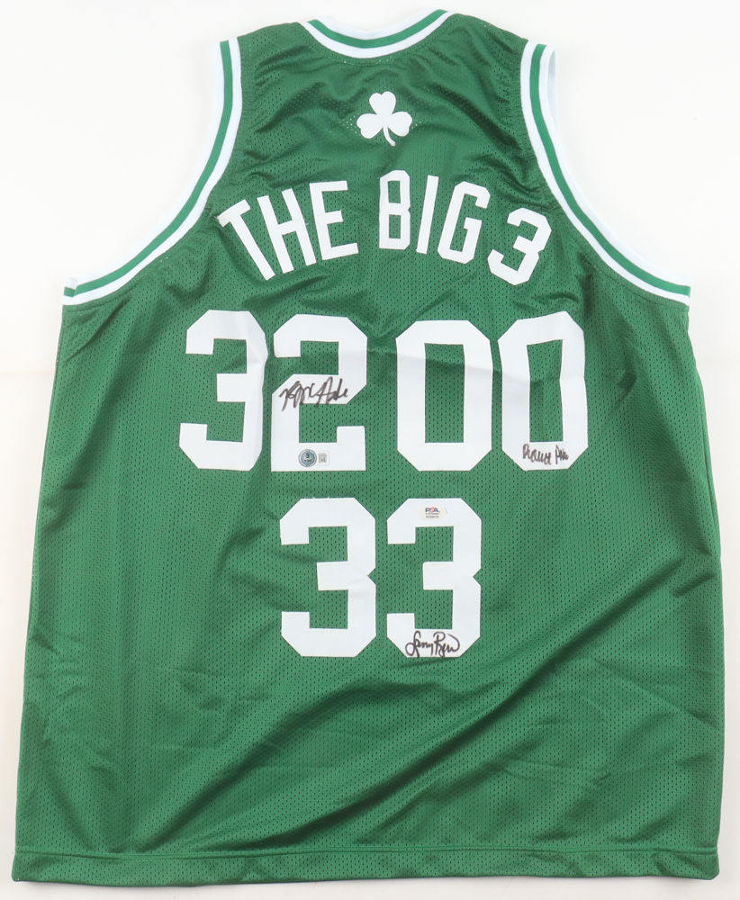 Custom jersey with everything sewn on, size XL. Hand-signed by Kevin McHale (HOF), Robert Parish (HOF), and Larry Bird (HOF).
