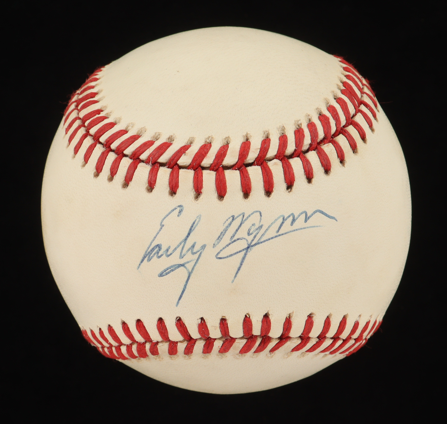 Rawlings Official American League Baseball. Hand-signed by Early Wynn (D. 1999, Cleveland Indians, HOF). Please note, the baseball is naturally toning and stained.