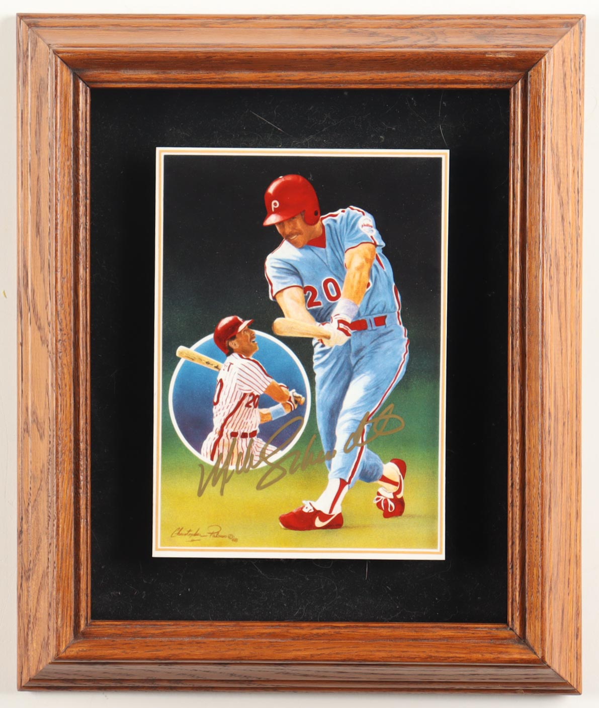 Custom frame measures approximately 10" x 12" in dimension and features a 500th Home Run Commemorative Art print that is hand-signed by Mike Schmidt (Philadelphia Phillies, HOF). Please see photos for details regarding the condition of the display.