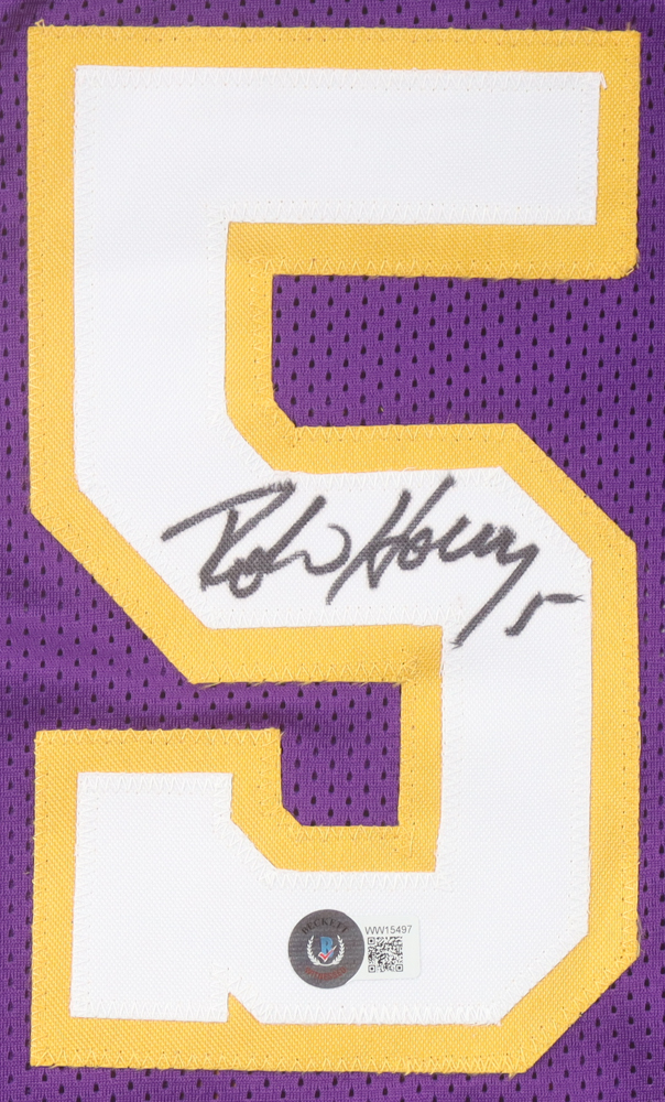 Custom jersey with everything sewn on, size XL. Hand-signed by Robert Horry.