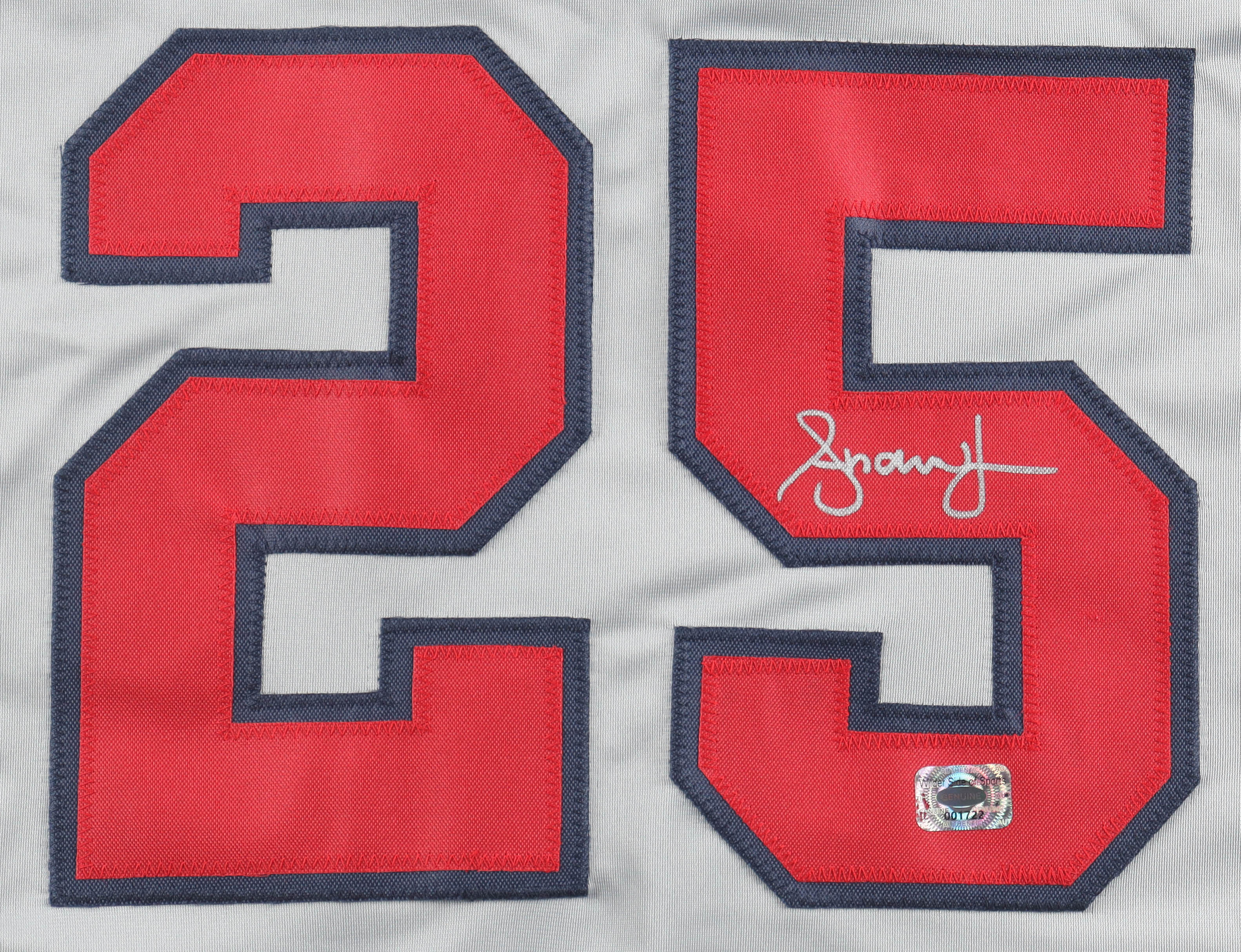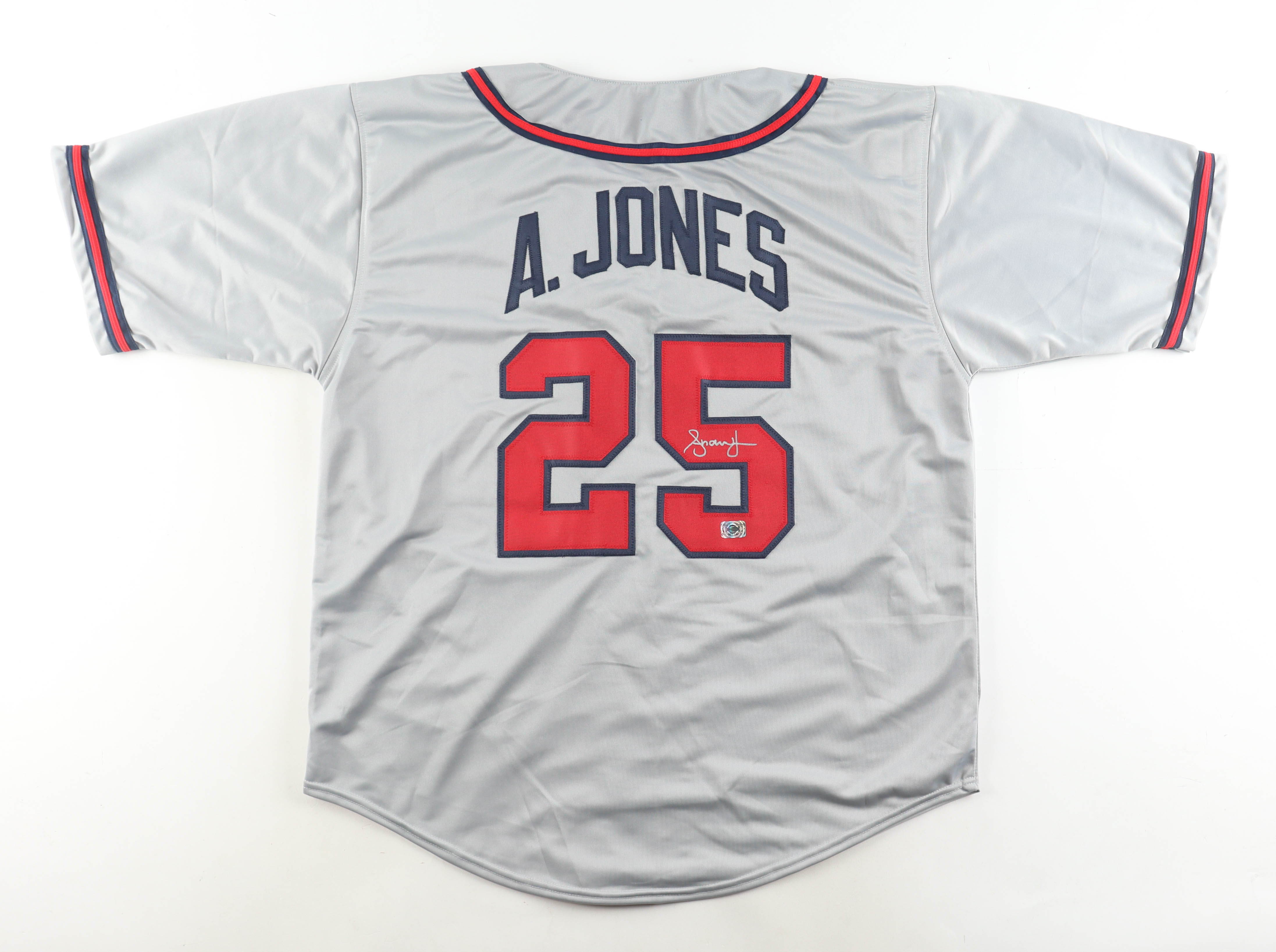 Custom jersey with everything sewn on, size XL. Hand-signed by Andruw Jones.