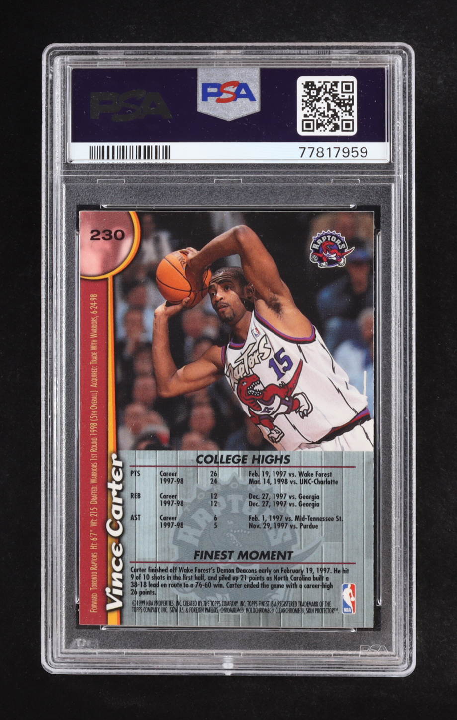 Vince Carter 1998 Finest W/Coating #230 RC (PSA 8)