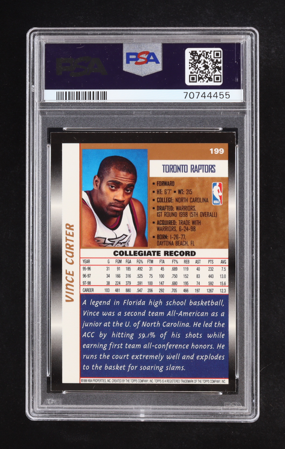 Vince Carter 1998 Topps #199 RC (PSA 8)