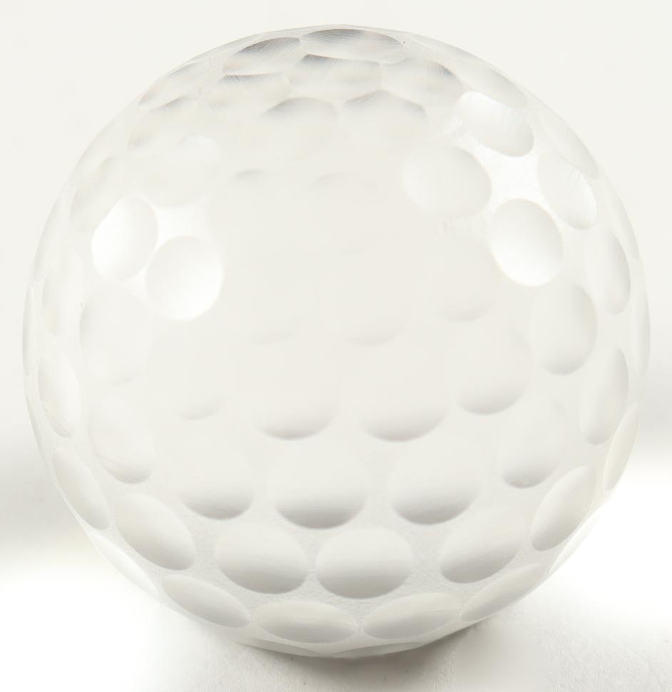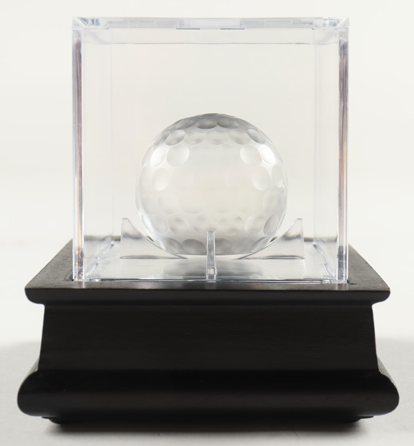 Crystal golf ball measures approximately 2" in diameter. Display case is included as shown.