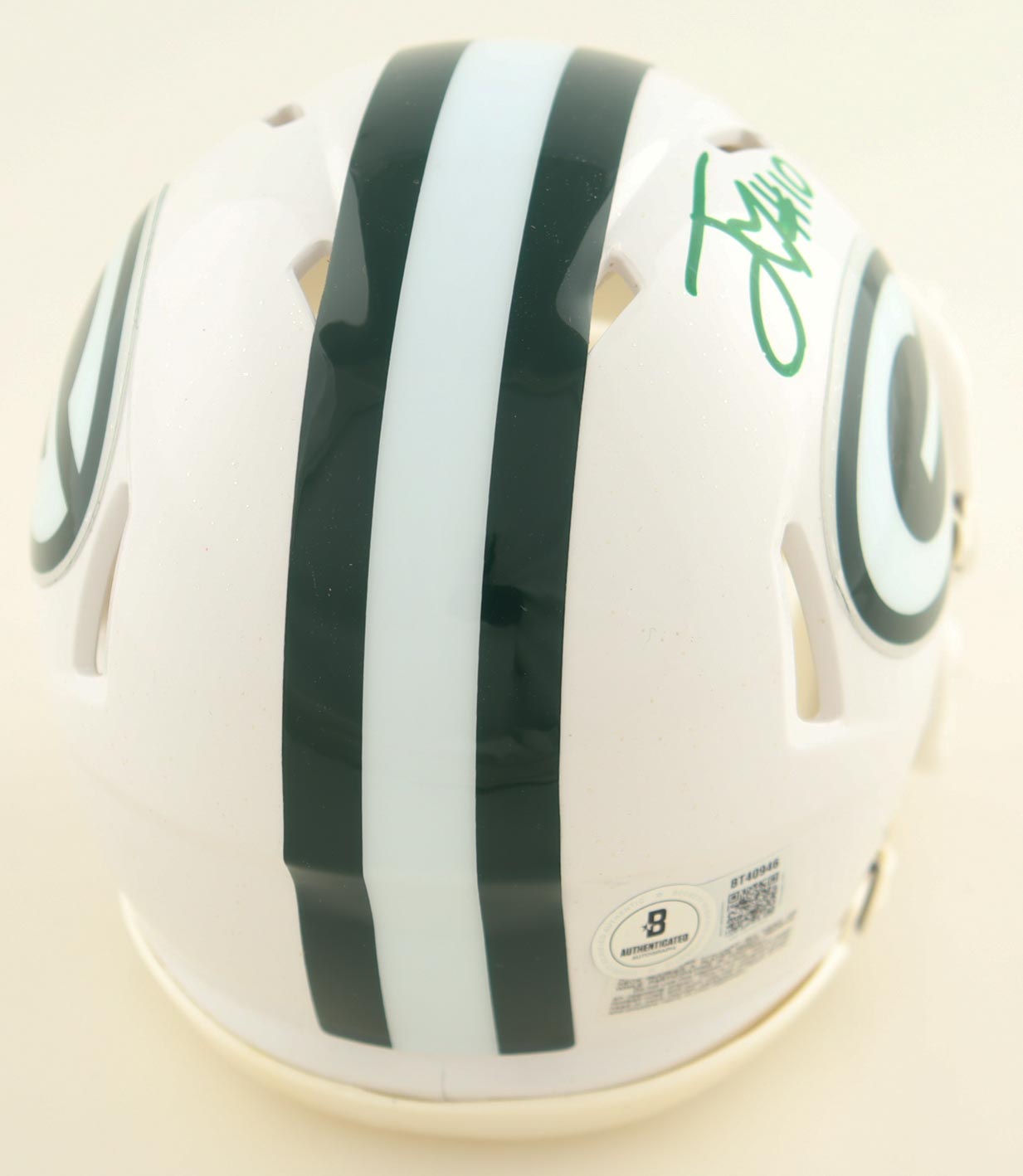 Riddell Green Bay Packers speed mini helmet has been hand-signed by Jordan Love.