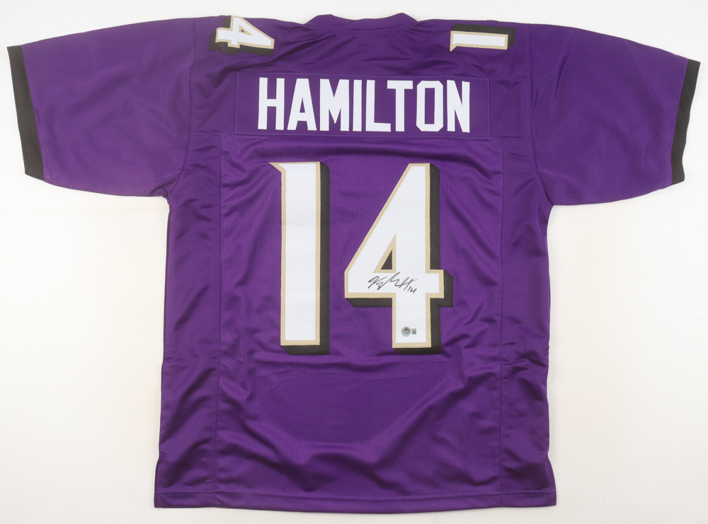 Custom jersey with everything sewn on, size XL. Hand-signed by Kyle Hamilton.