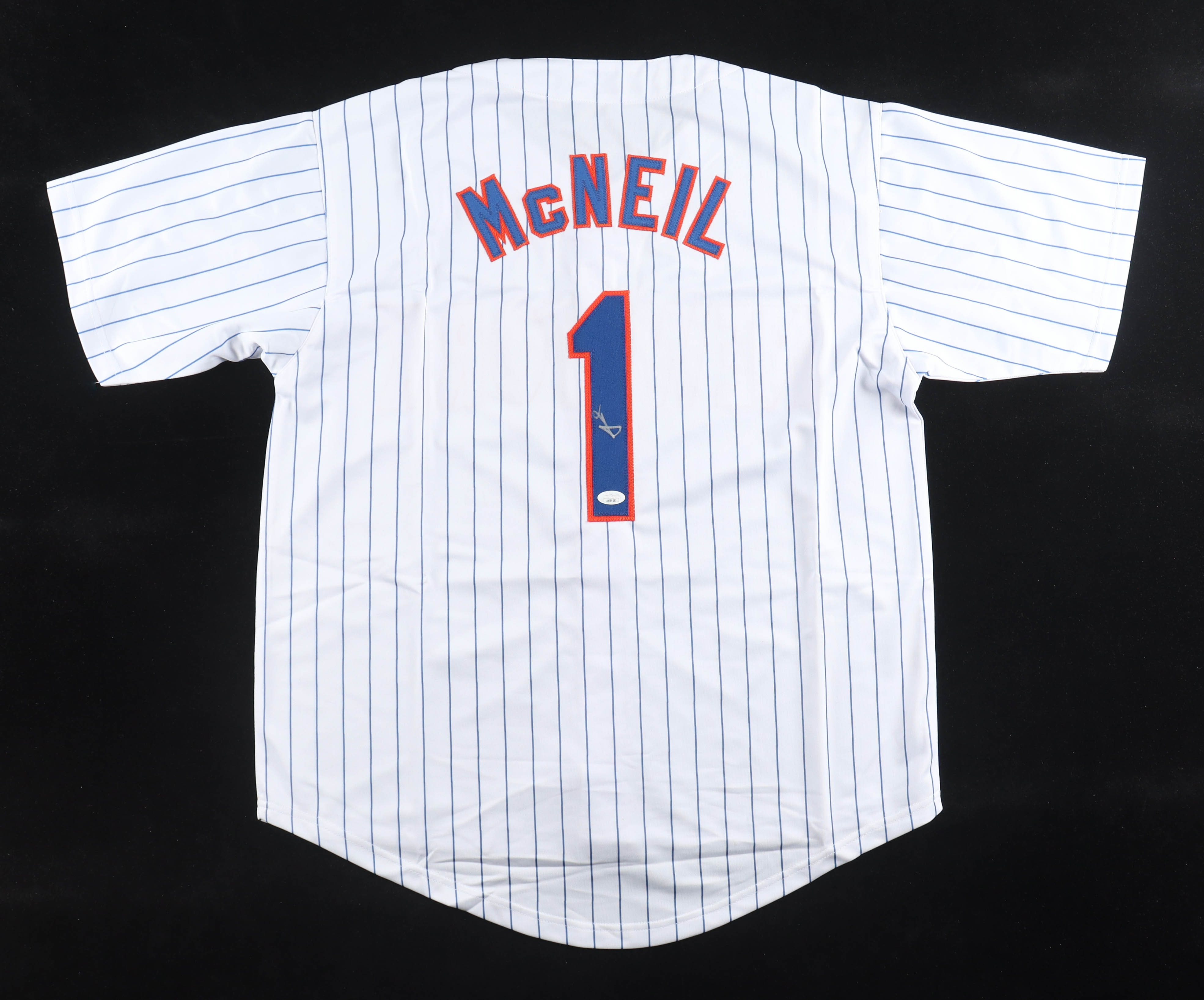 Custom jersey with everything sewn on, size XL. Hand-signed by Jeff McNeil.