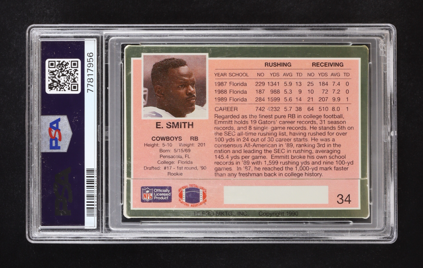 Emmitt Smith 1990 Action Packed Rookie Update #34 RC (PSA 7)
