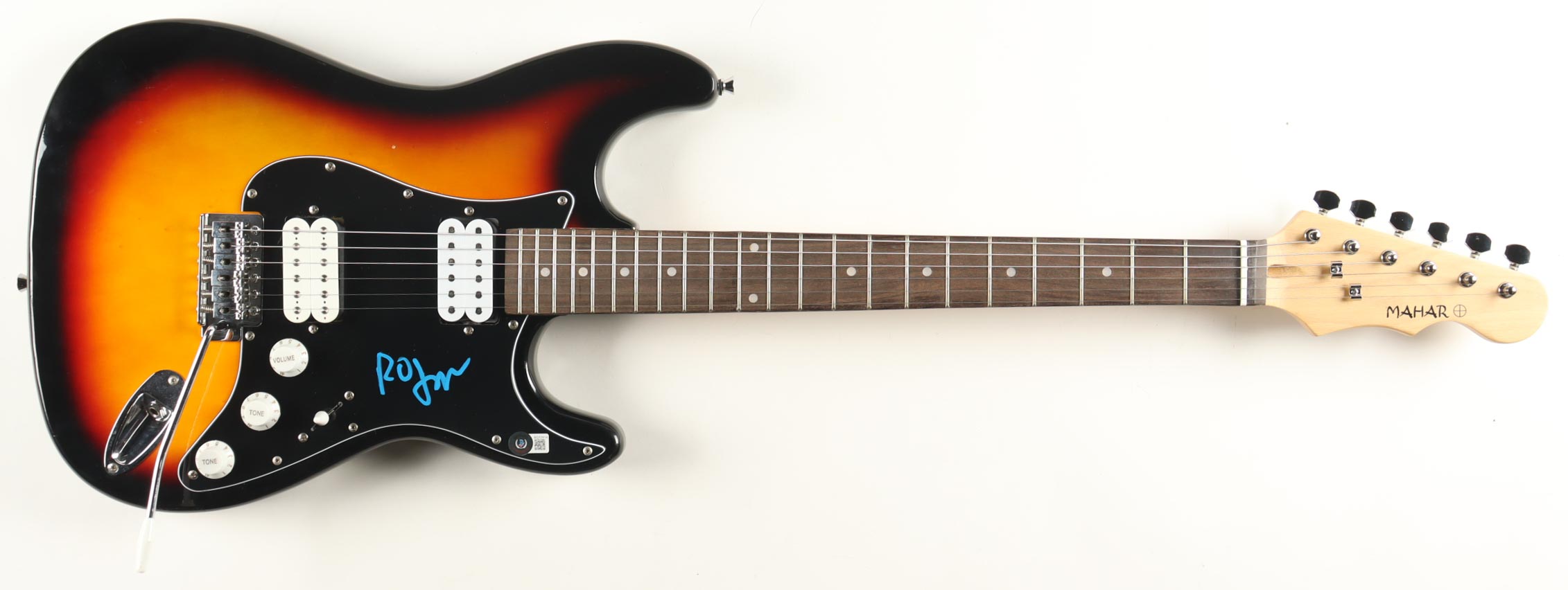 Mahar electric guitar has been hand-signed on the pick guard by Robert Smith.