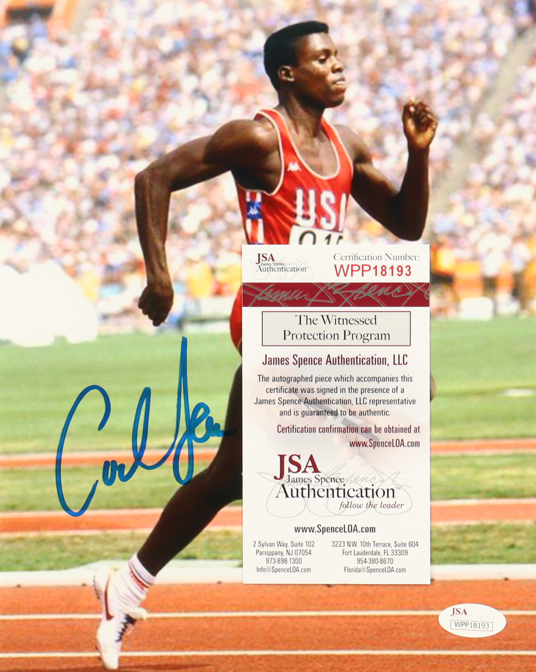 Photo measures 8" x 10" in size and has been hand-signed by Carl Lewis.