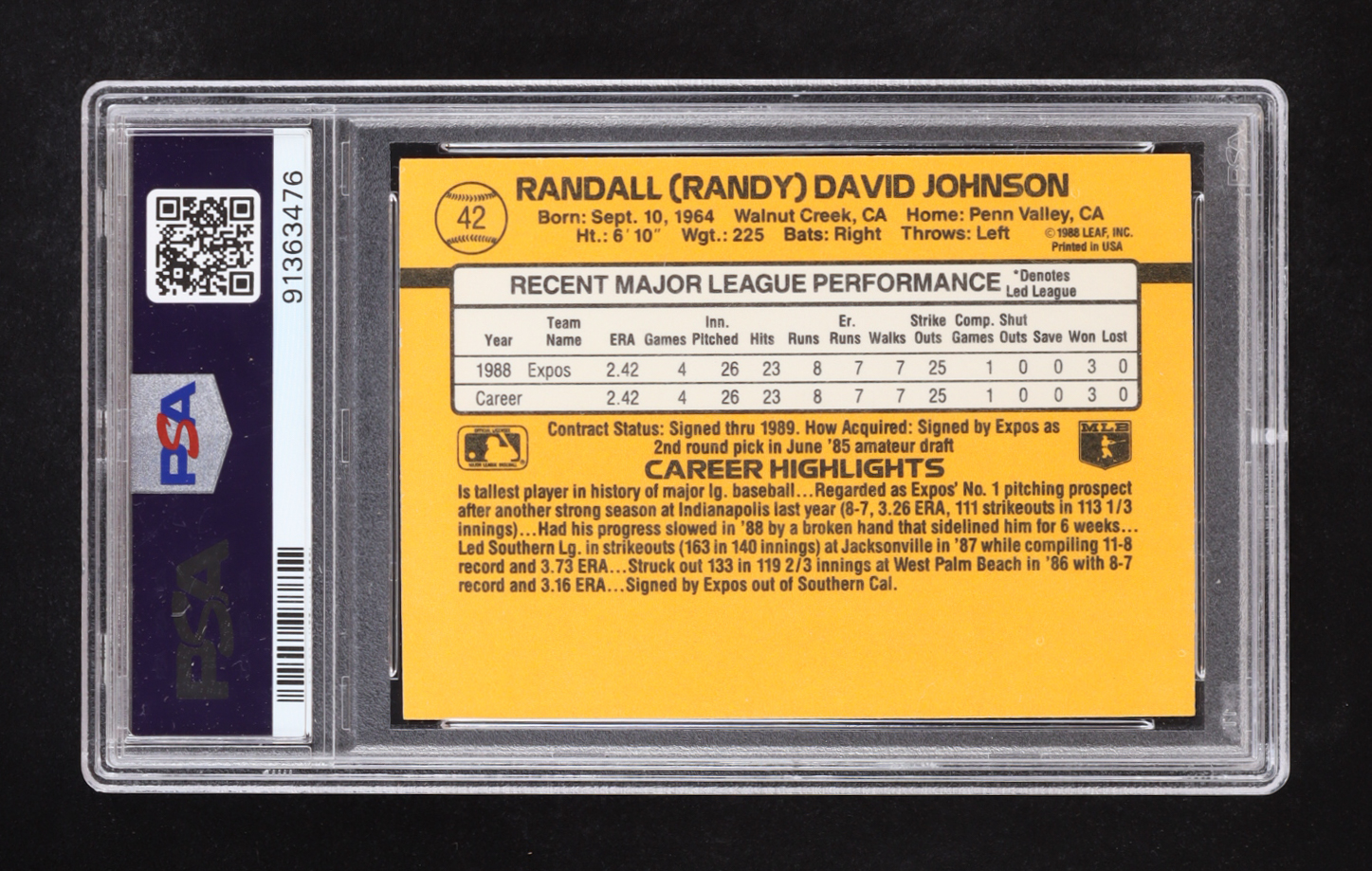 Randy Johnson 1989 Donruss RR #42 RC (PSA 8)