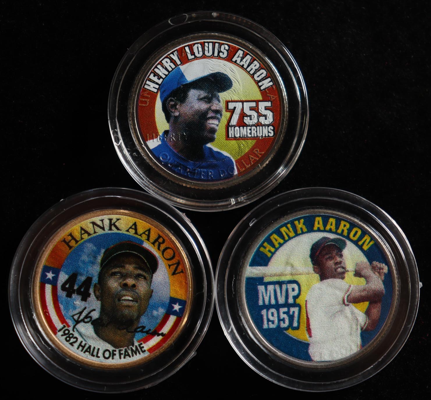 Hank Aaron Set of (3) Merrick Mint Colorized U.S. State Quarters with Certificate