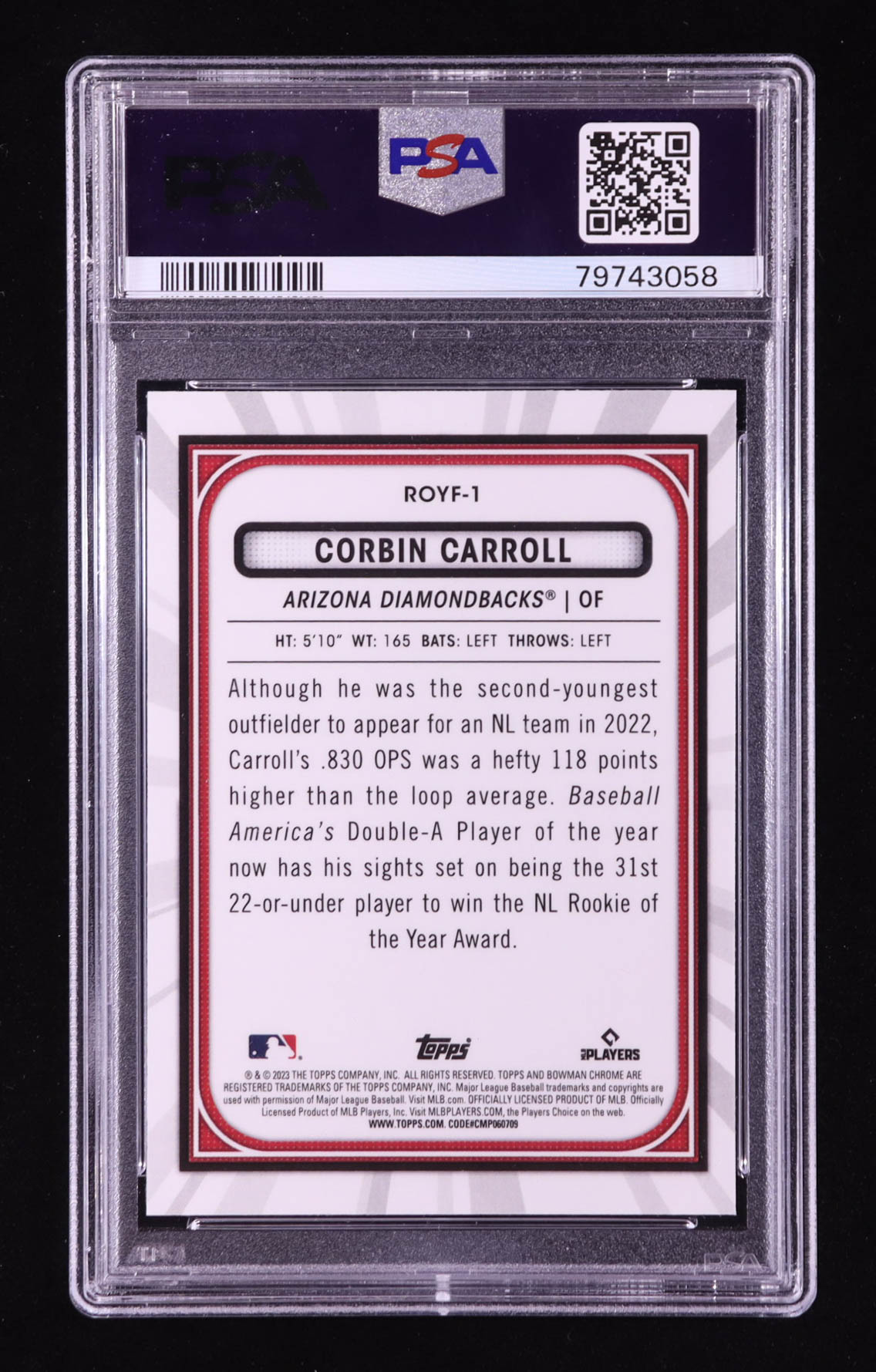 Corbin Carroll 2023 Bowman Chrome Rookie of the Year Favorites #ROYF1 RC (PSA 10)