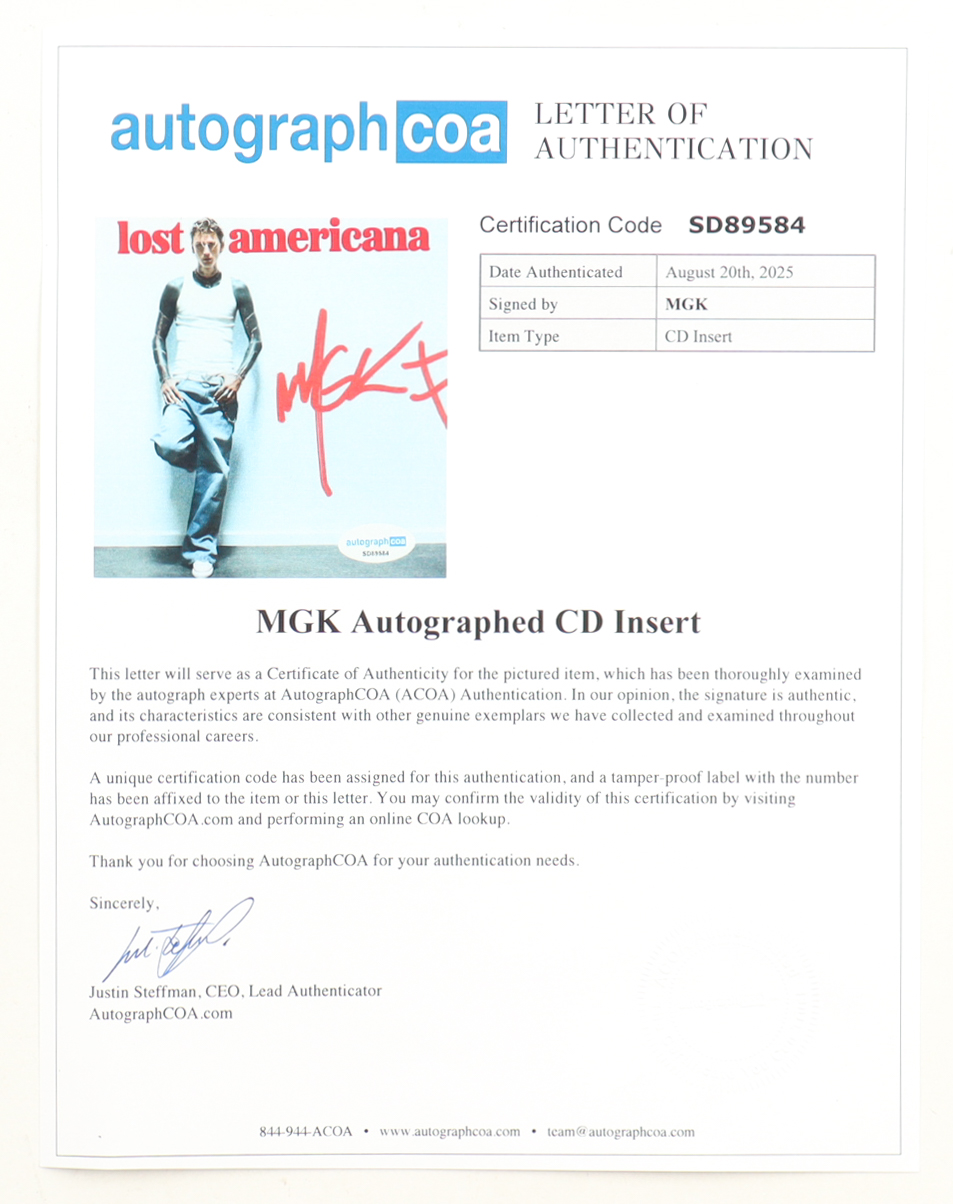 MGK Signed "Lost Americana" Custom Framed CD Insert Display (ACOA)