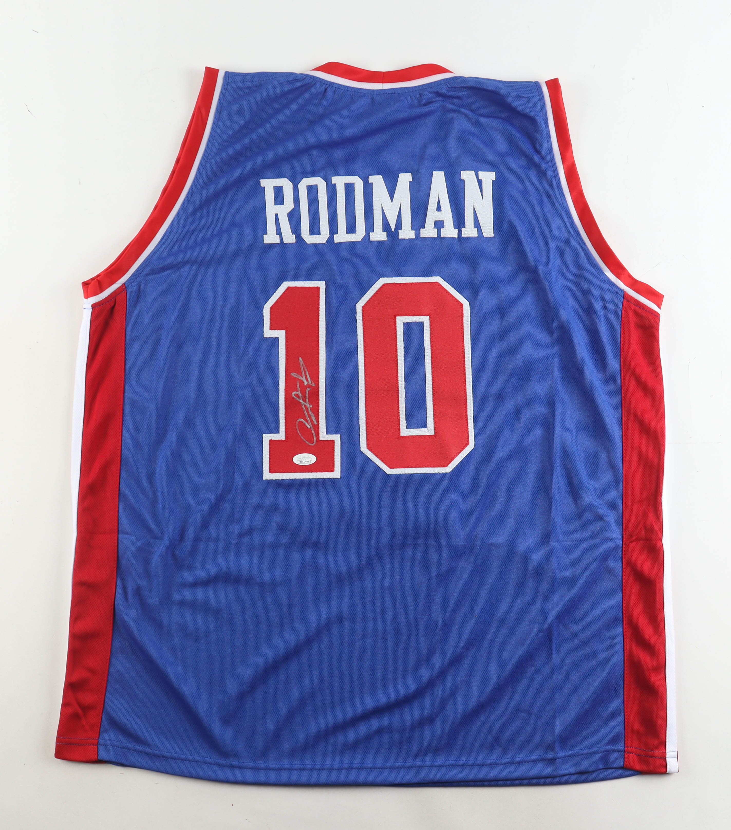 Custom jersey with everything sewn on, size XL. Has been hand-signed by Dennis Rodman (HOF).