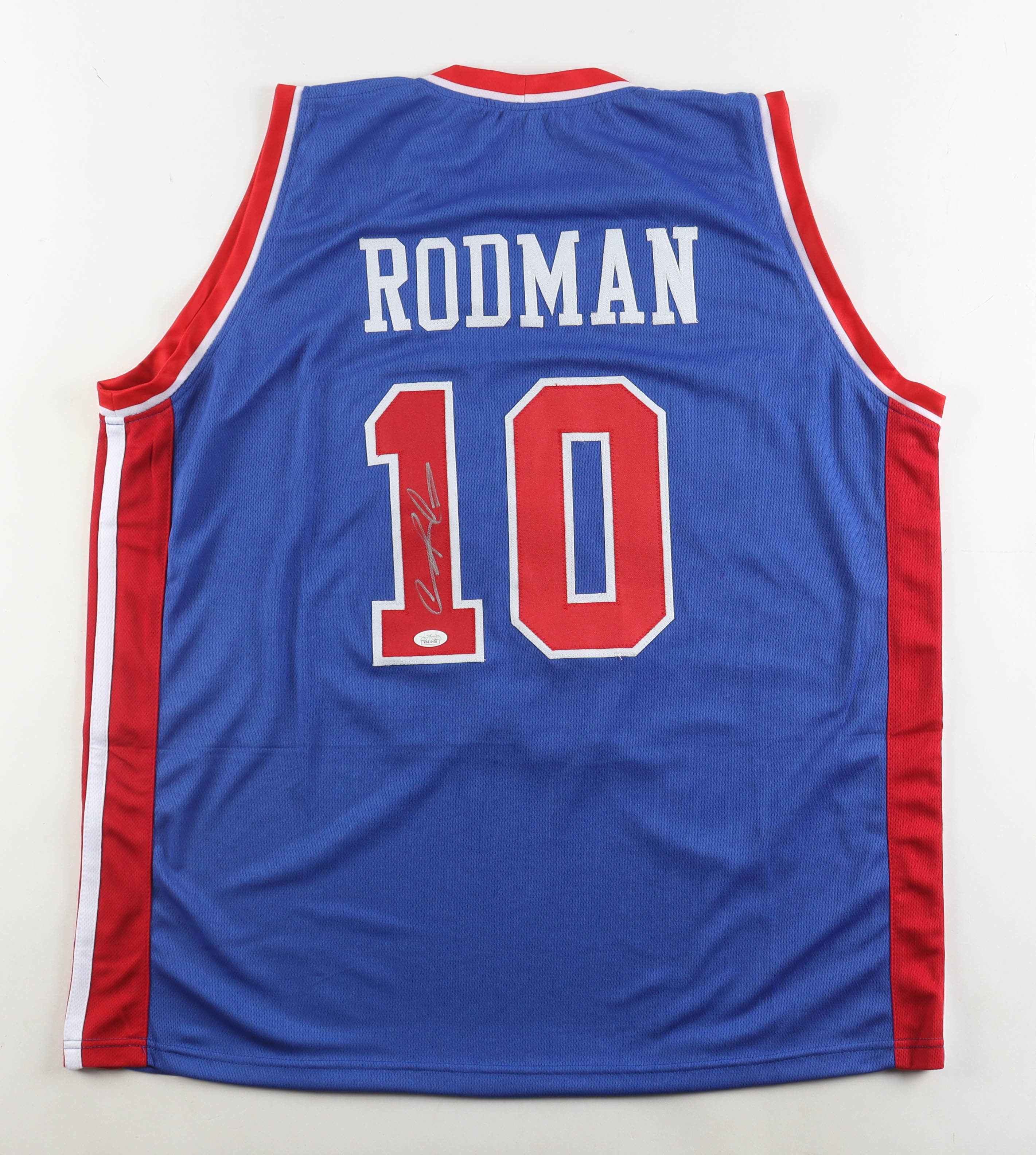 Custom jersey with everything sewn on, size XL. Has been hand-signed by Dennis Rodman (HOF).