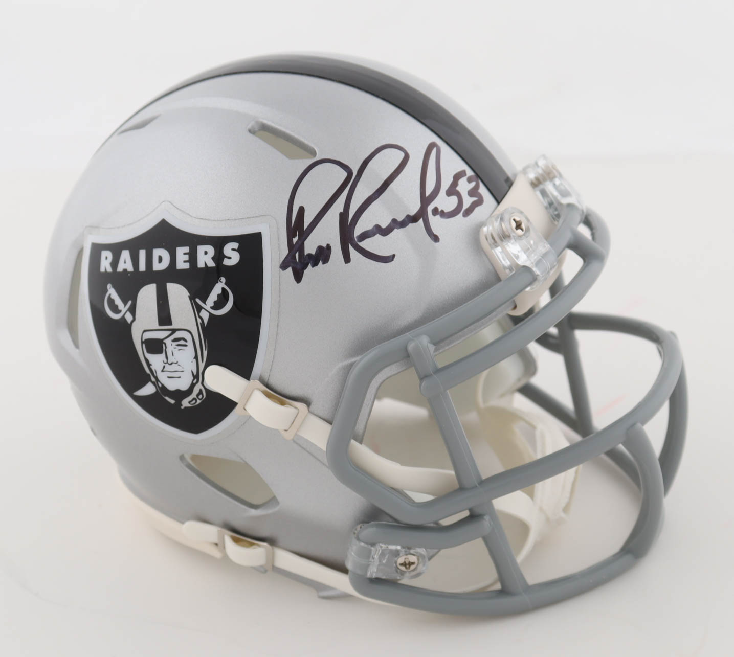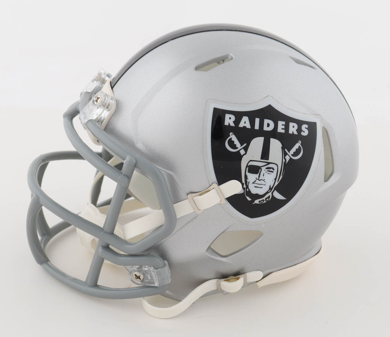 Riddell Oakland Raiders Speed mini helmet. Hand-signed by Bill Romanowski.