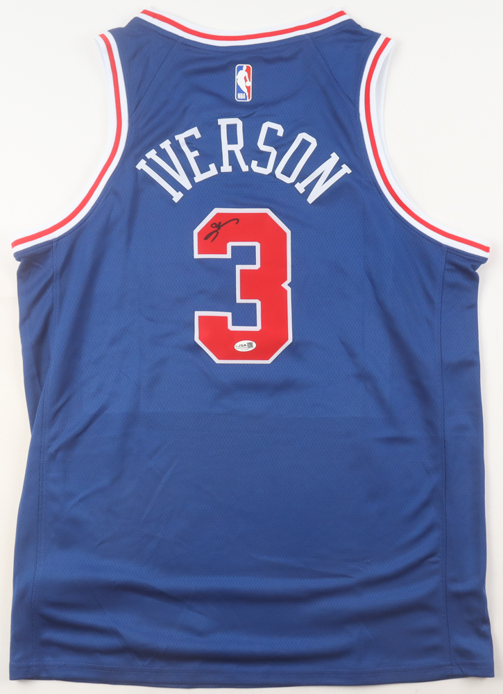 Nike authentic jersey with everything pressed on, size 48. Hand-signed by Allen Iverson (HOF).