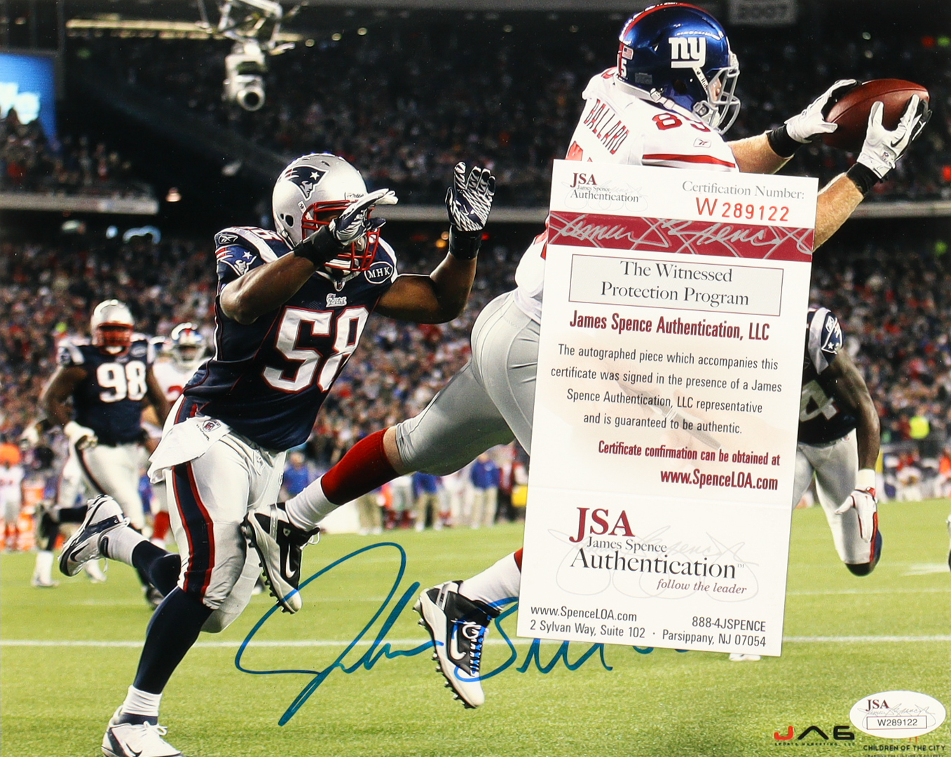 Photograph measures 8" x 10" in size. Hand-signed by Jake Ballard (New York Giants).