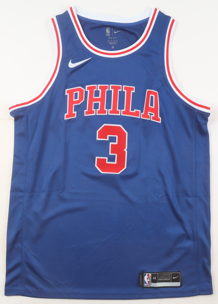 Nike authentic jersey with everything pressed on, size 48. Hand-signed by Allen Iverson (HOF).