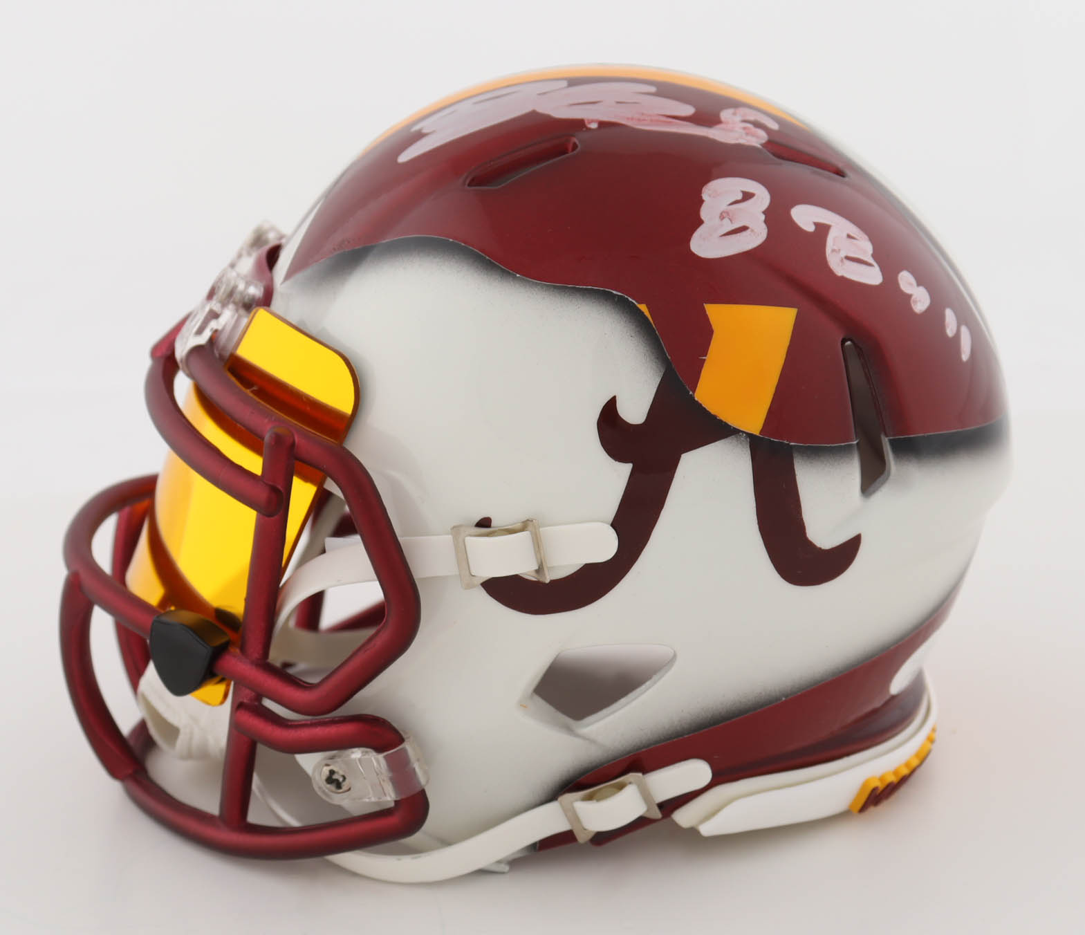 Riddell Alabama Crimson Tide Custom Alternate Speed Mini Helmet with Visor. Hand-signed by Brian Robinson Jr.