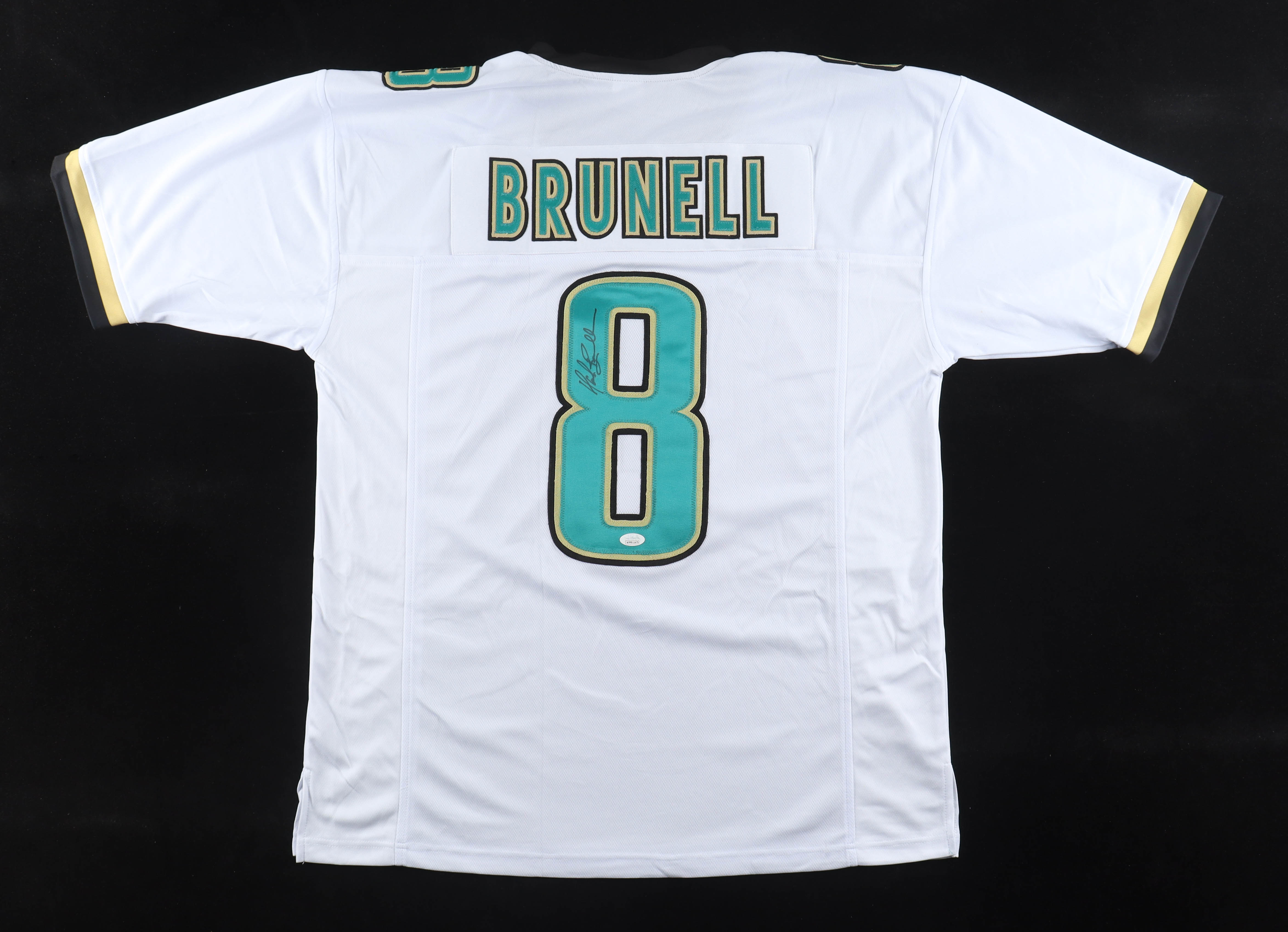 Custom jersey with everything sewn on, size XL. Hand-signed by Mark Brunell.