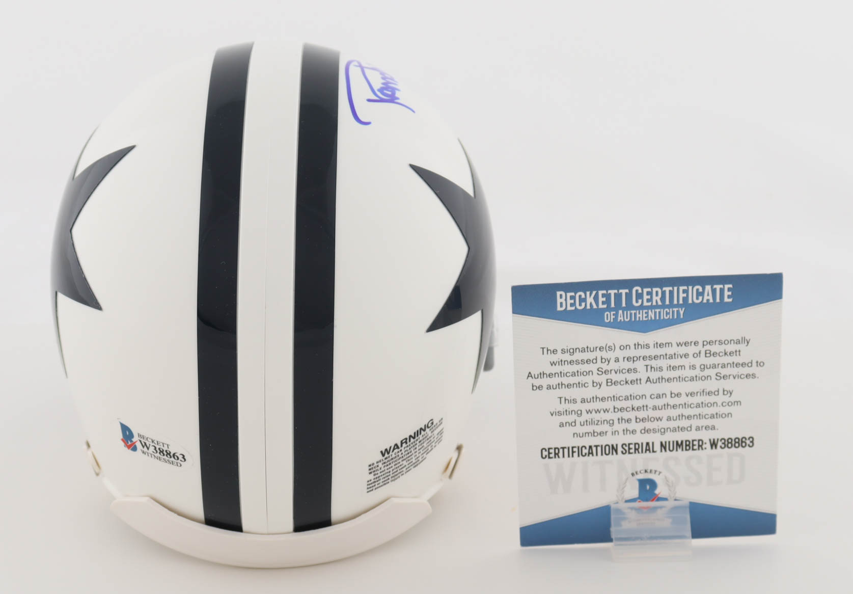 The autograph includes an official Beckett Authentication Services serially-numbered hologram and matching COA for authenticity purposes. The signing of this item was witnessed by Beckett.