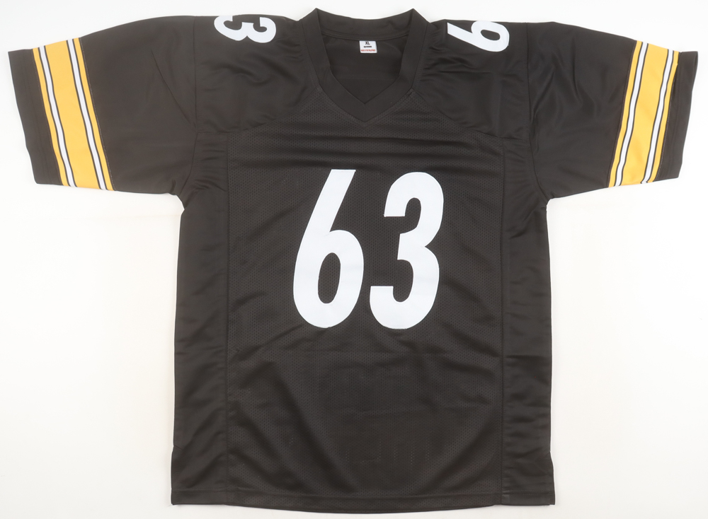 Custom jersey with everything sewn on, size XL. Hand-signed and inscribed by Dermontti Dawson (HOF).