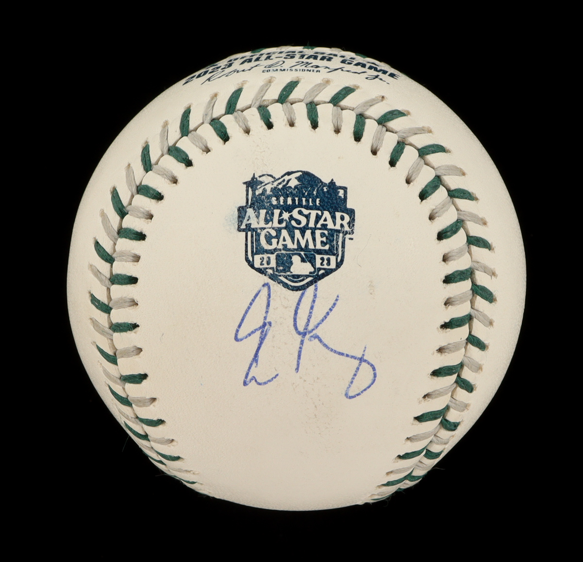 Rawlings Official 2023 All-Star Game Logo Baseball has been hand-signed by George Kirby (Seattle Mariners).