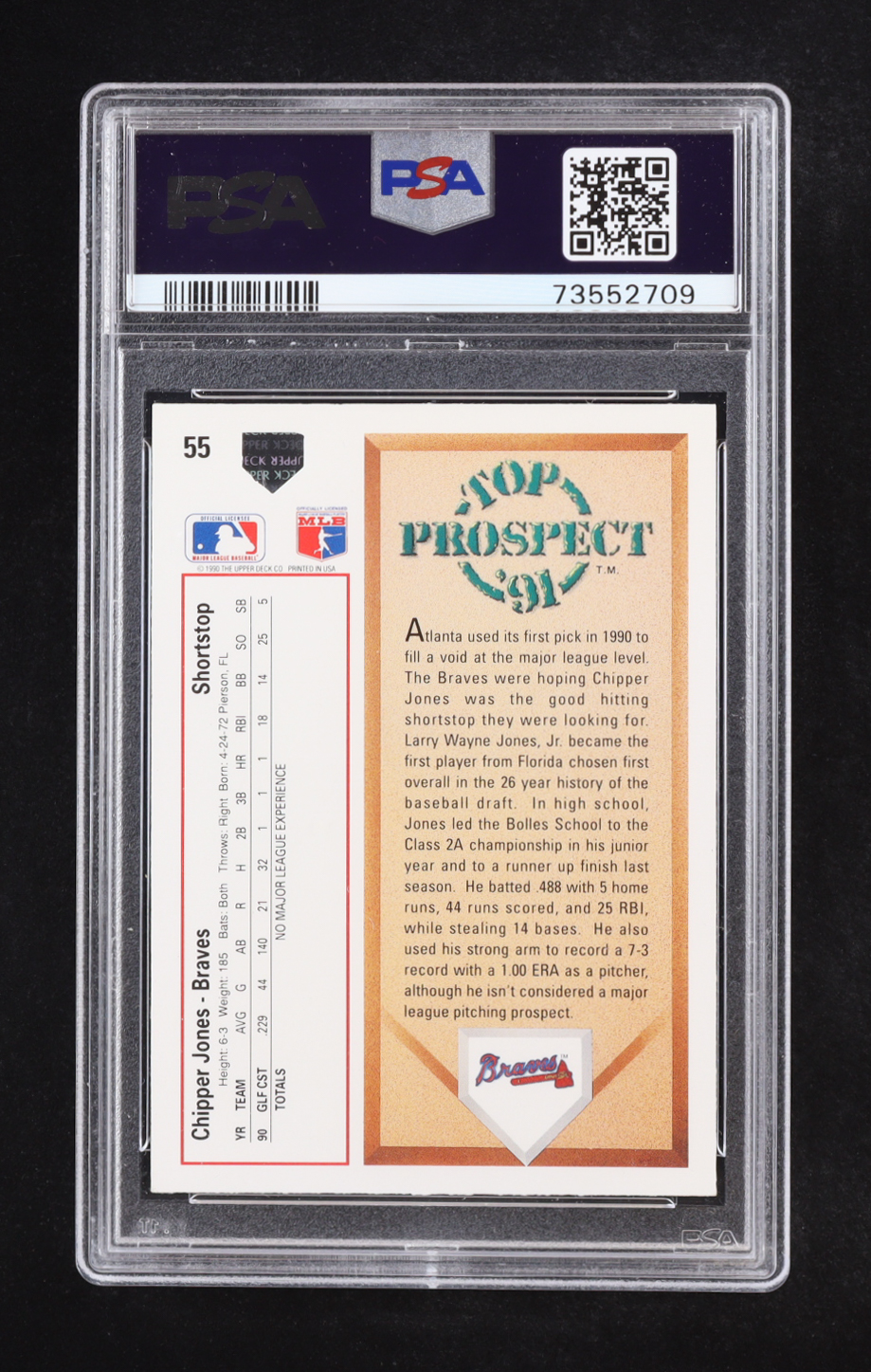 Chipper Jones 1991 Upper Deck #55 RC (PSA 8)
