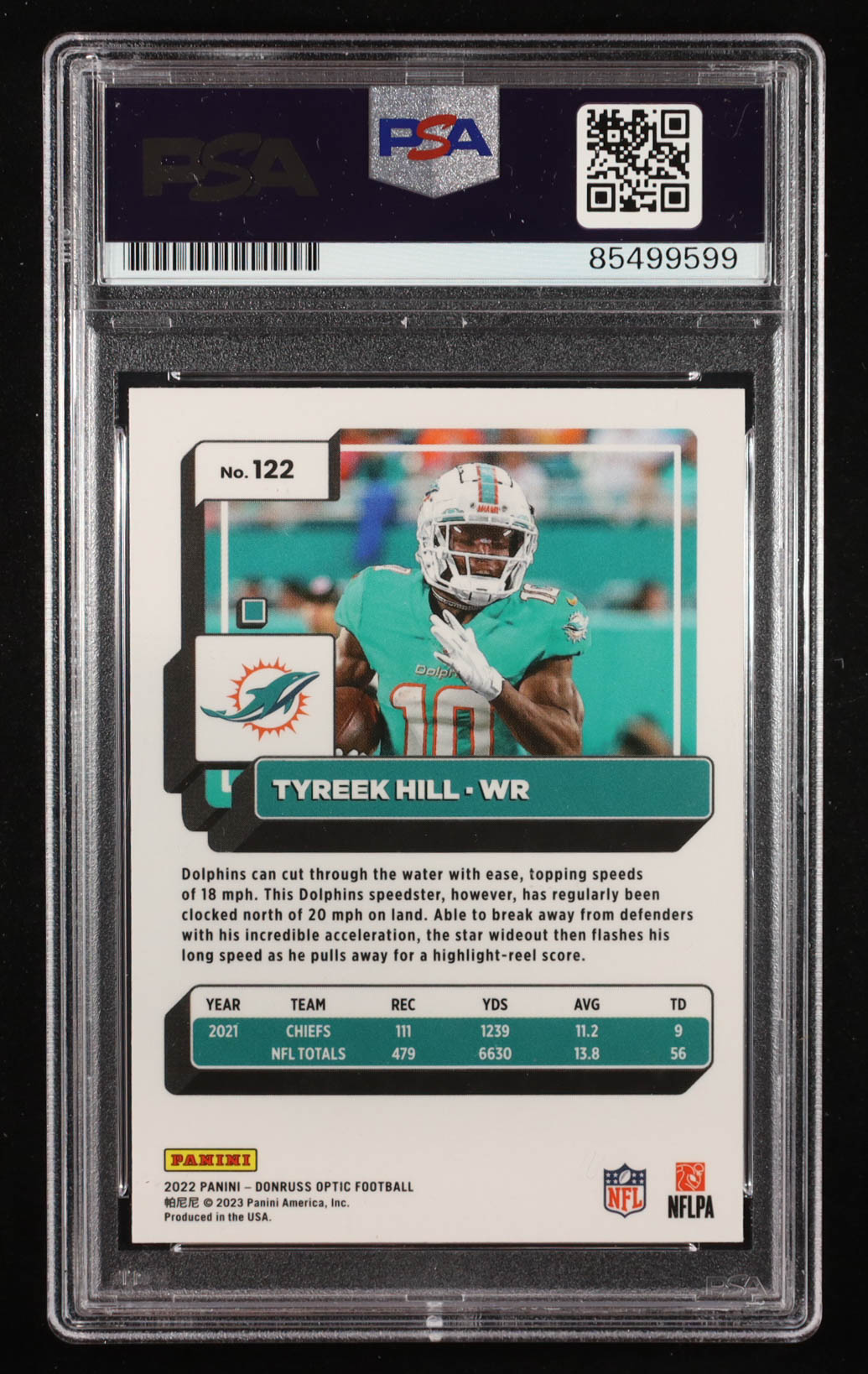 Tyreek Hill Signed 2022 Donruss Optic #122 (PSA)