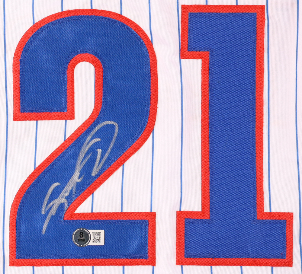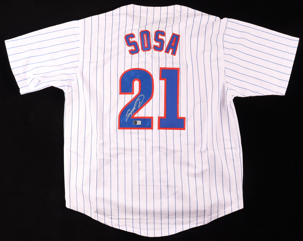 Custom jersey. Everything is sewn on, size XL. Hand-signed by Sammy Sosa.