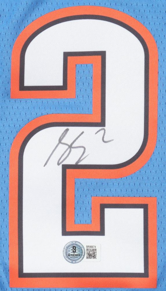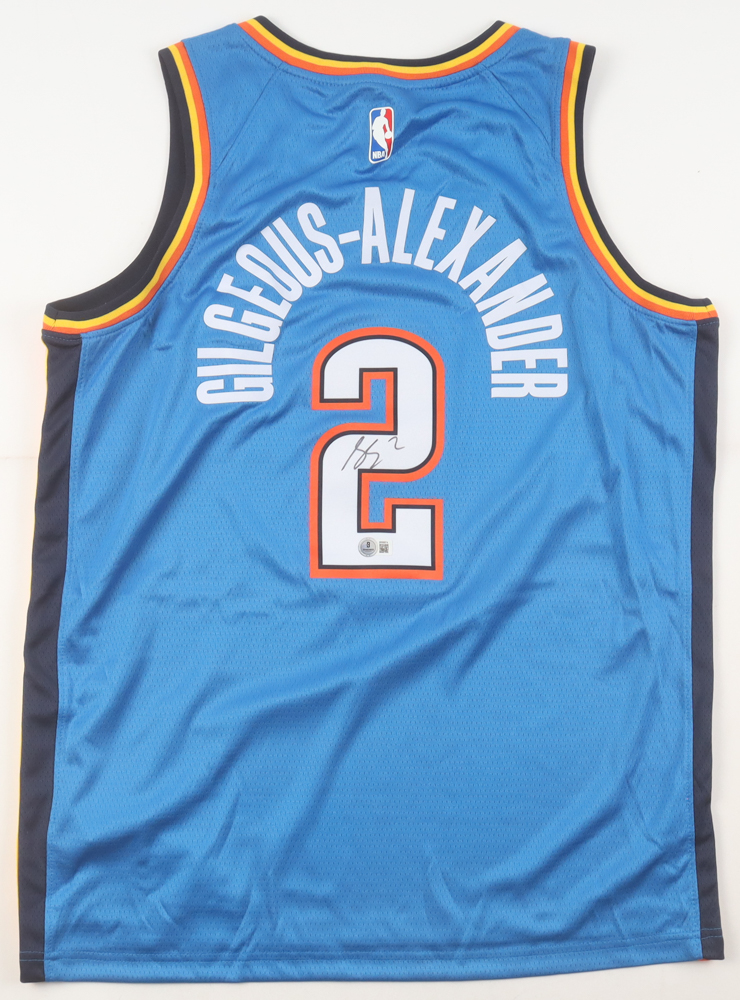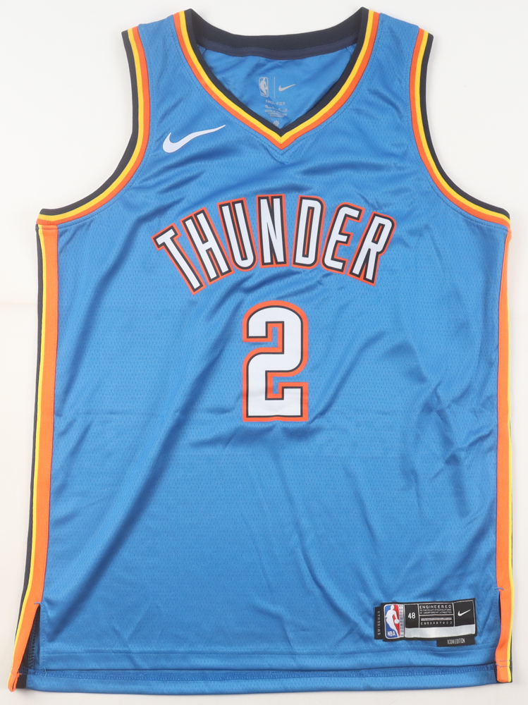 Nike authentic jersey with everything pressed on, size 48. Hand-signed by Shai Gilgeous-Alexander (Oklahoma City Thunder).