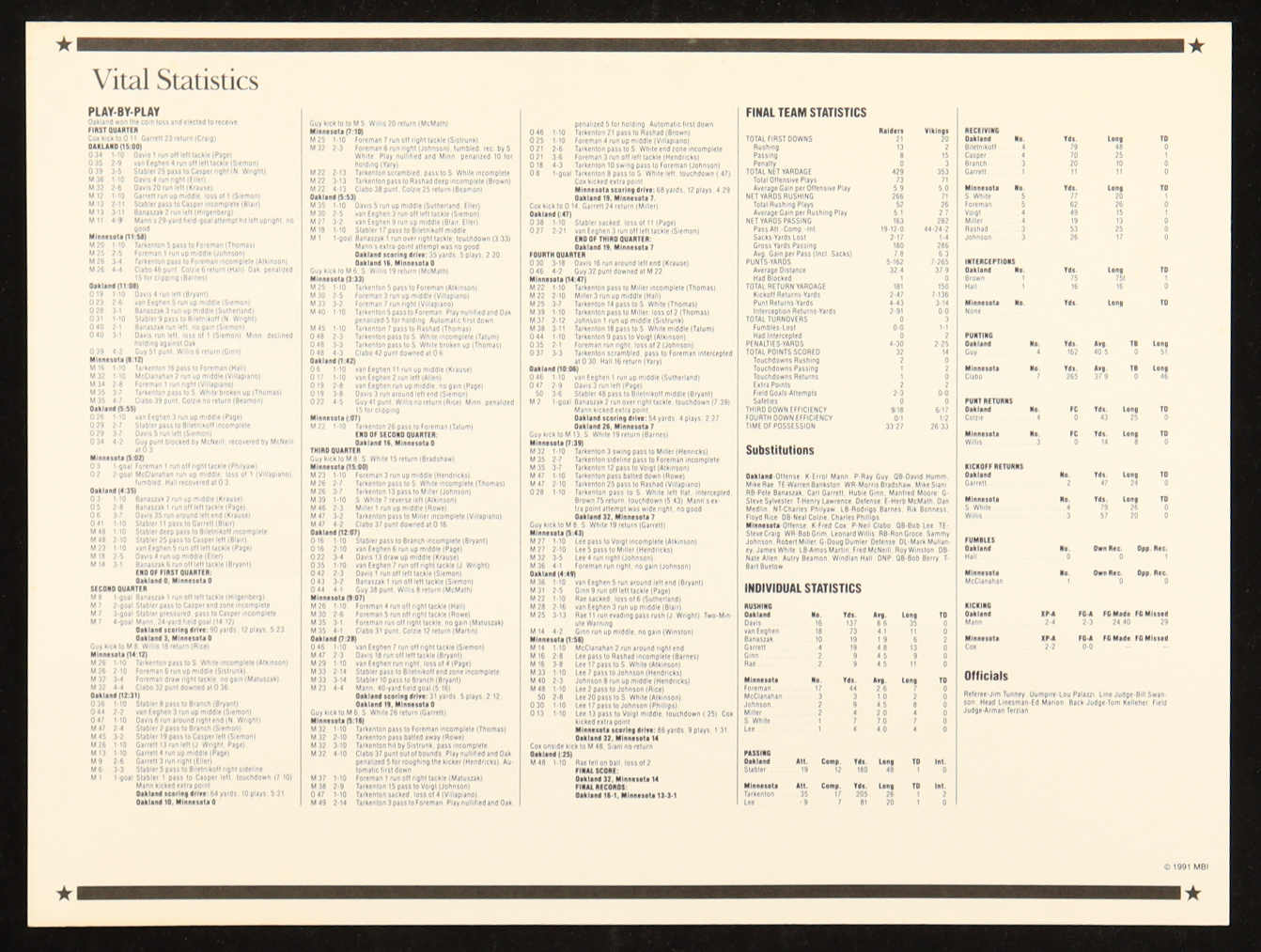 Unsigned | Oakland Raiders (32) vs. Minnesota Vikings (14)