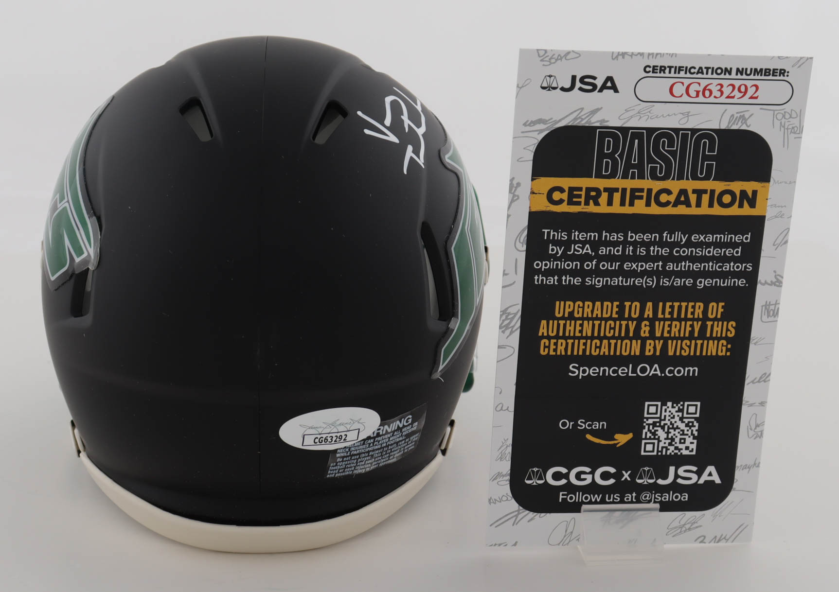 Riddell New York Jets eclipse alternate speed mini helmet. Hand-signed by Vinny Testaverde (New York Jets).
