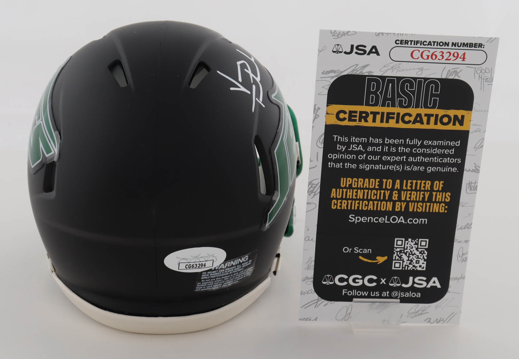 Riddell New York Jets eclipse alternate speed mini helmet. Hand-signed by Vinny Testaverde (New York Jets).