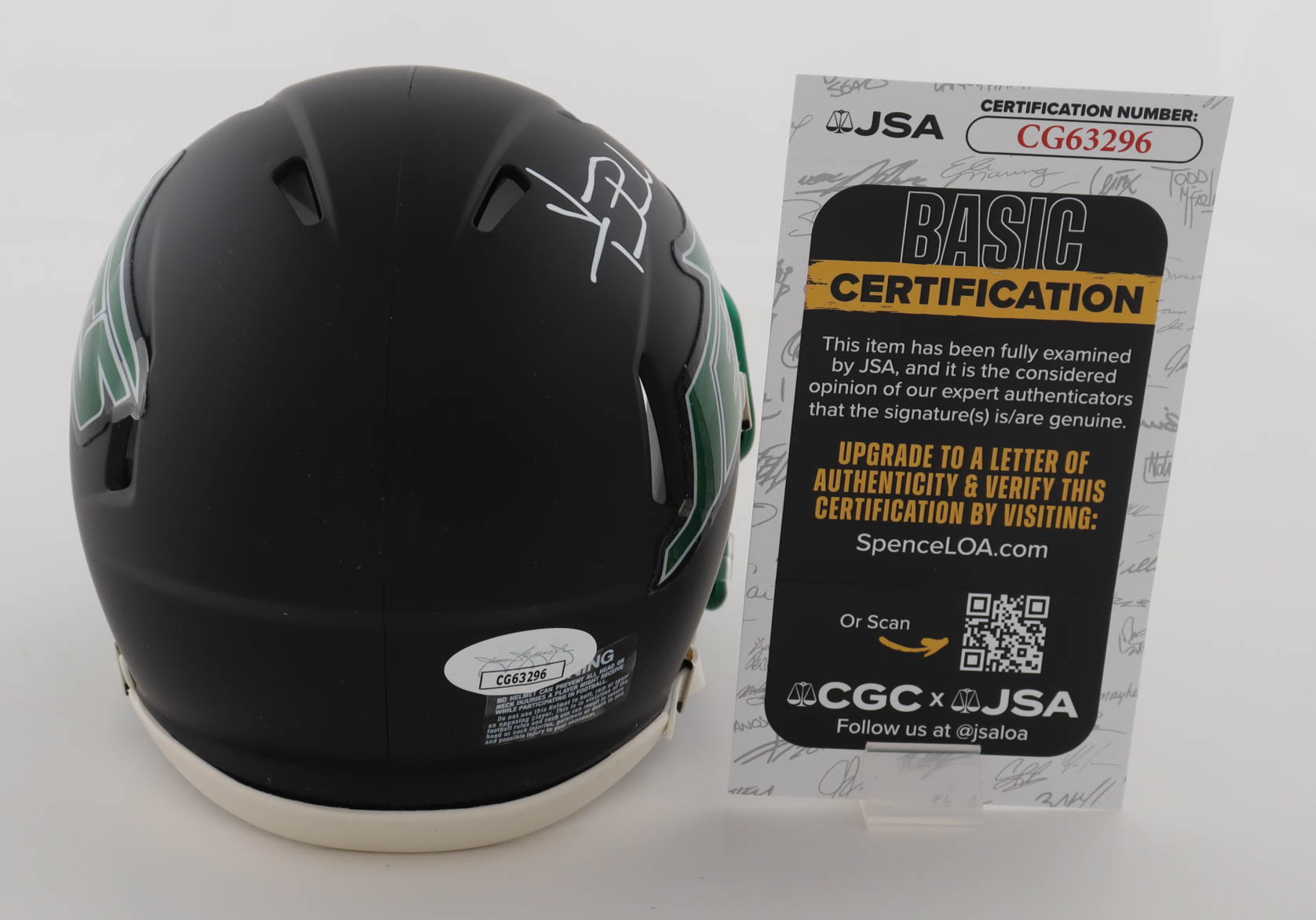 Riddell New York Jets eclipse alternate speed mini helmet. Hand-signed by Vinny Testaverde (New York Jets).