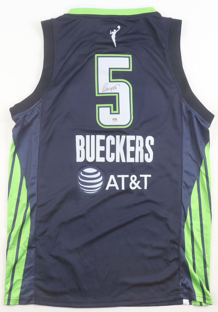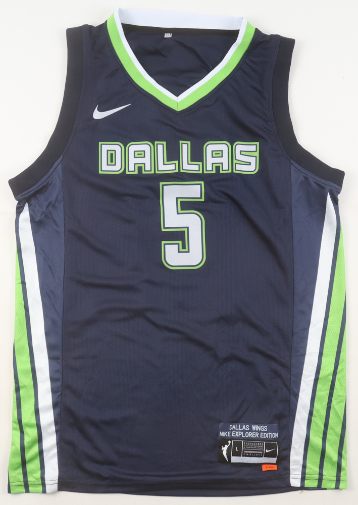 Nike authentic jersey with everything pressed on, size L. Hand-signed by Paige Bueckers (Dallas Wings).