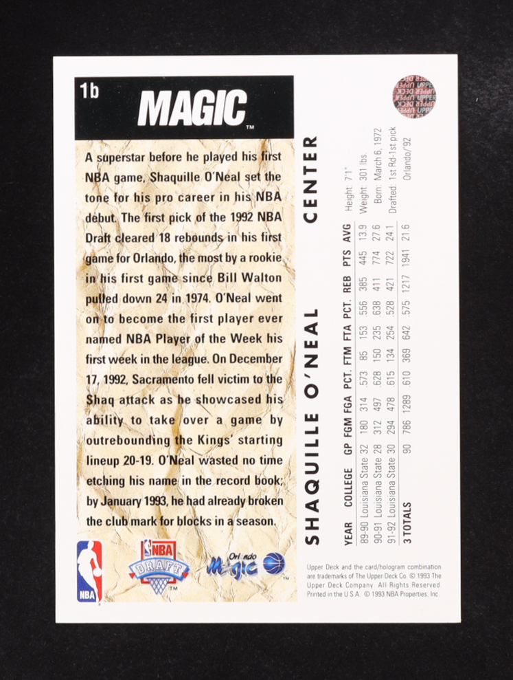 Shaquille O'Neal 1992-93 Upper Deck #1 RC
