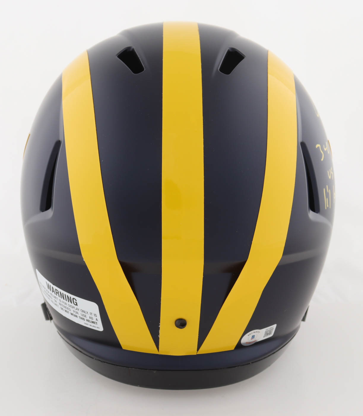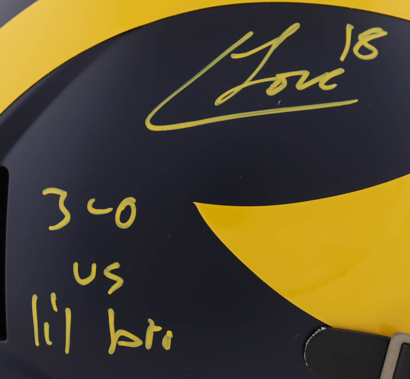 Colston Loveland Signed Michigan Wolverines Full-Size Speed Helmet Inscribed "3-0 vs Lil Bro" (Beckett)