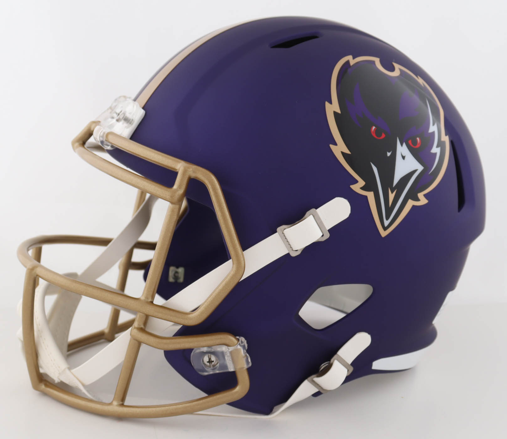 Riddell Baltimore Ravens full-size replica Speed helmet. Hand-signed and inscribed by Derrick Henry.