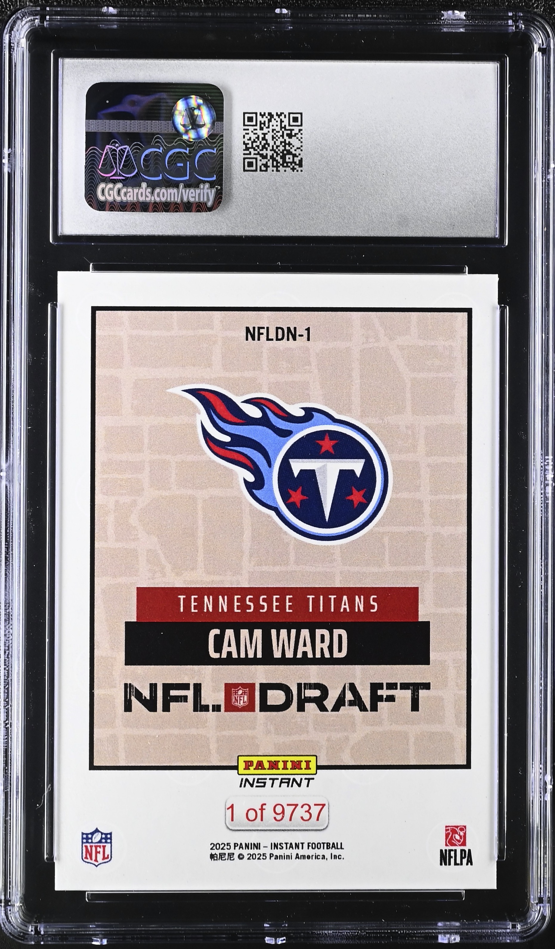 Cam Ward 2025 Panini Instant #NFLDN-1 Draft Night RC (CGC 9.5)
